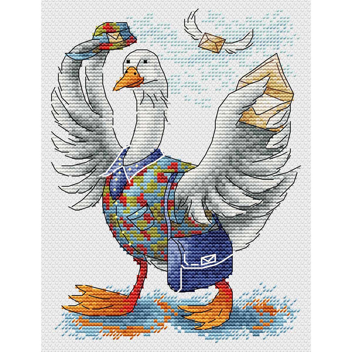 Вышивка крестиком набор Хорошие вести от МП Студии станет настоящим украшением вашей коллекции рукоделия и милым подарком для всех, кто увлекается вышиванием. Готовое полотно с изображением милого гуся-почтальона, спешащего доставить радостные новости, станет очаровательным акцентом в интерьере, напоминая о приятных сюрпризах и лёгкости жизни. Готовая работа имеет размеры 18х13 см, поэтому ей легко найти место в детской комнате, гостиной или на кухне. В наборе вы найдете все необходимые материалы для создания неповторимой картины, подробная инструкция позволит легко разобраться с тонкостями вышивки даже начинающим. Вышивка крестиком - это увлекательное занятие, которое помогает расслабиться и снять стресс. Оно также развивает творческие способности, улучшает концентрацию и мелкую моторику рук. Это отличный способ провести время с пользой для здоровья и ума, а также создать уникальный подарок для себя или близких. Набор для вышивания Хорошие вести содержит белую хлопковую канву 14 каунта, нитки мулине ПНК им. Кирова, разобранные на органайзере, иглу, схему бумажную и электронную Makosh, а также руководство по вышиванию.