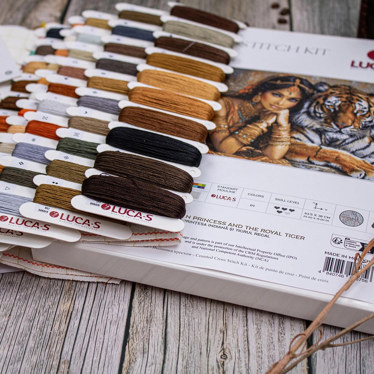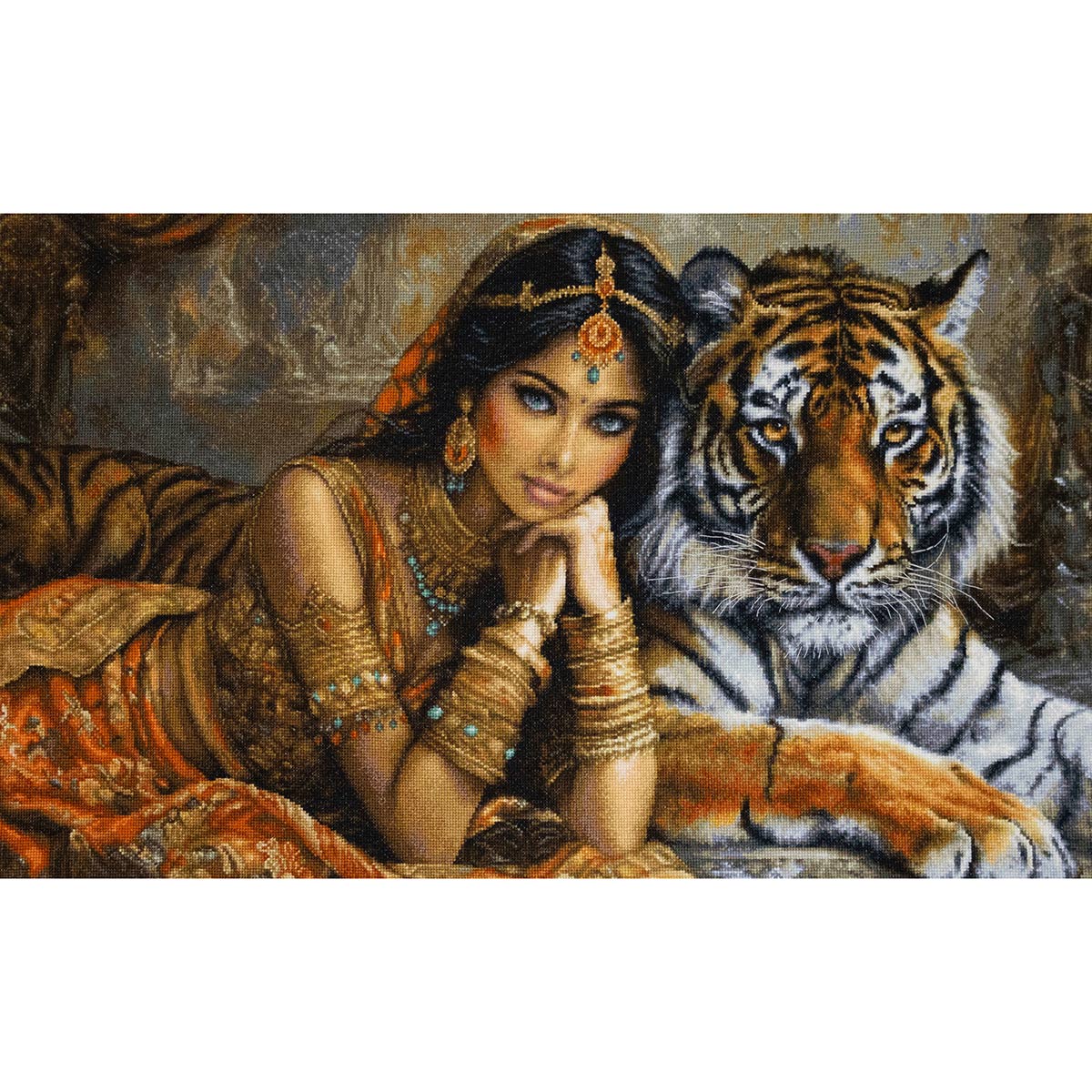 Набор для вышивания нитками Luca-S, Индийская принцесса и тигр, 63,5х38см