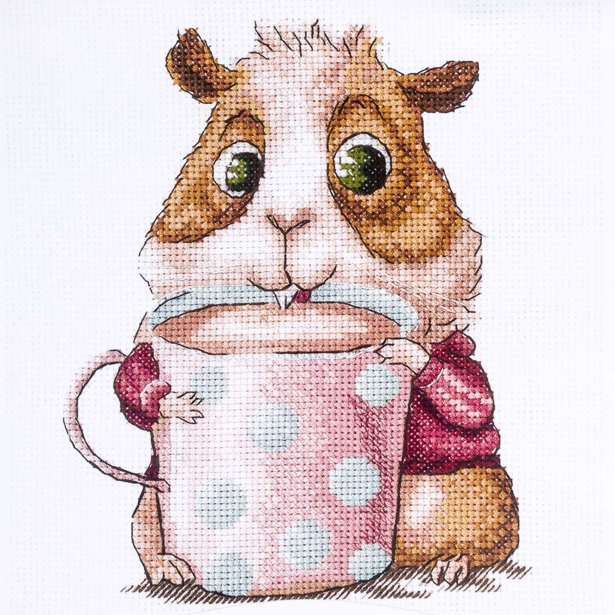 Набор для вышивания нитками Сделай своими руками, Кофеманы. Морской свин 12х16,5 см