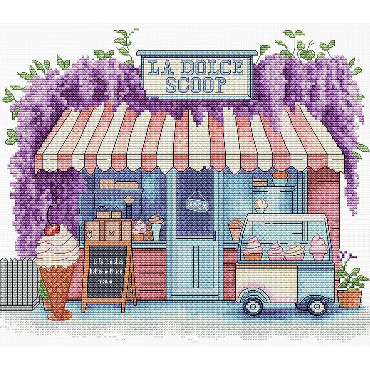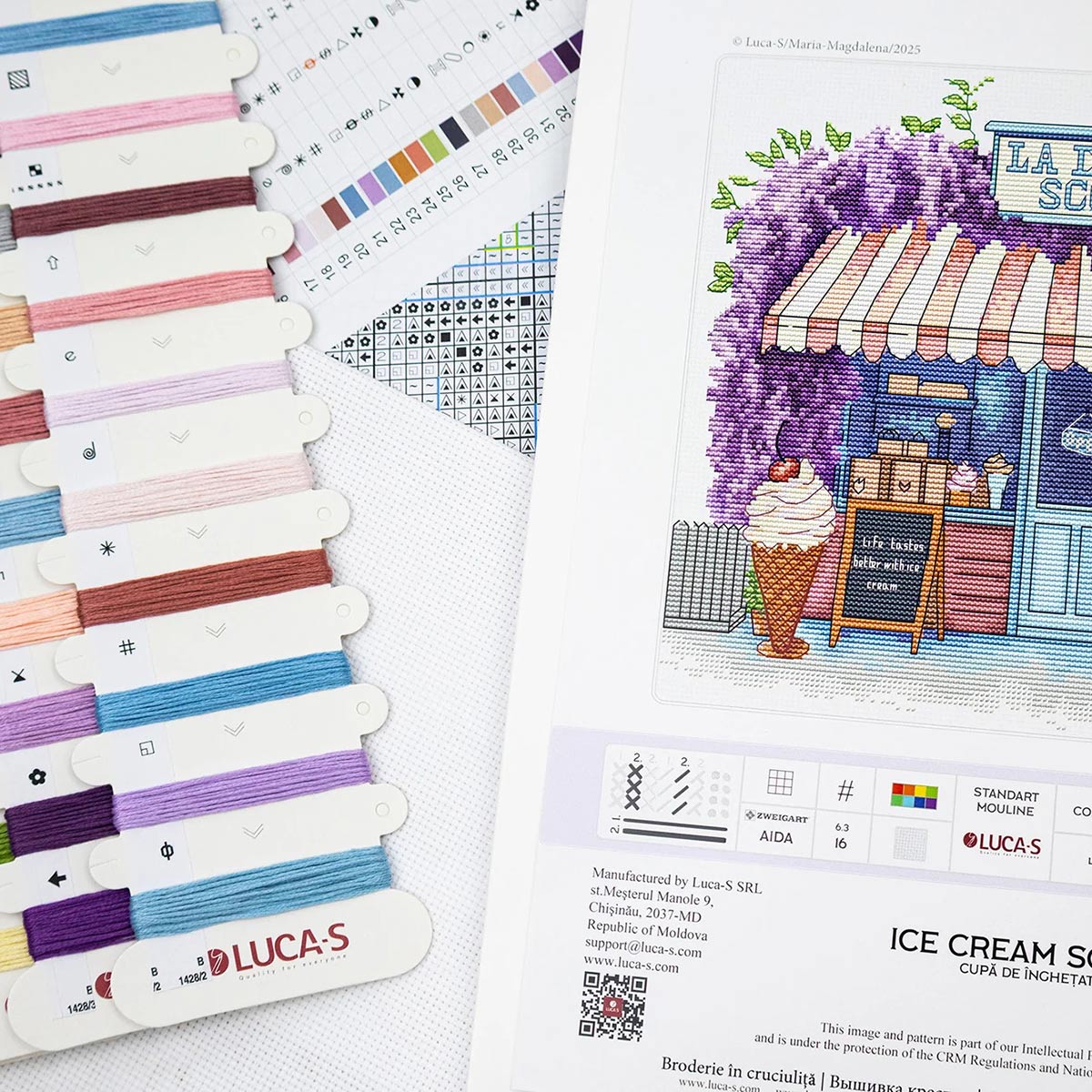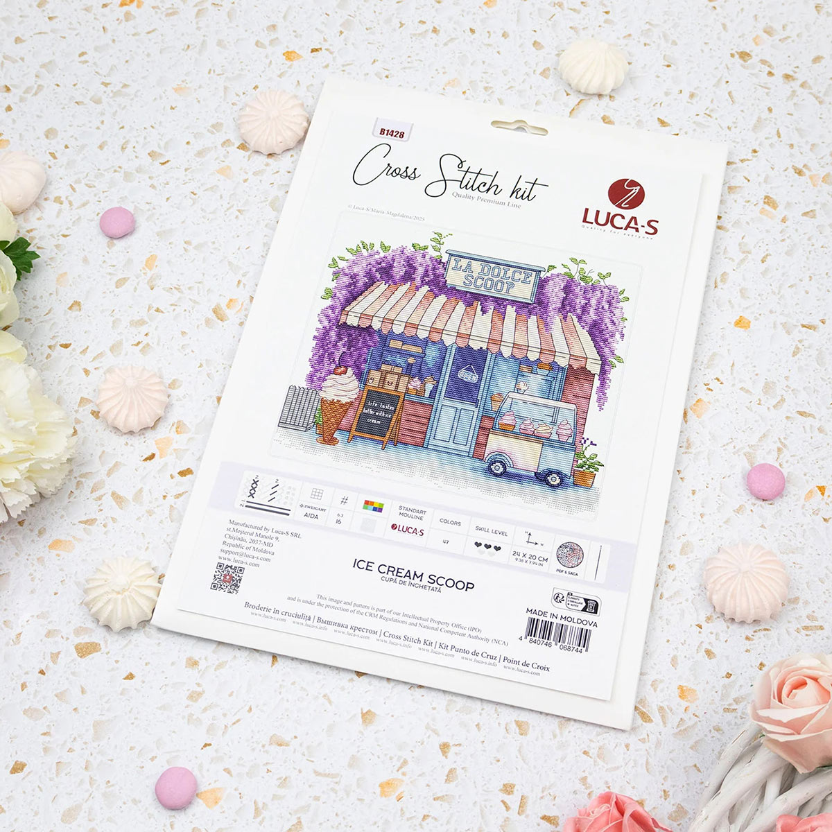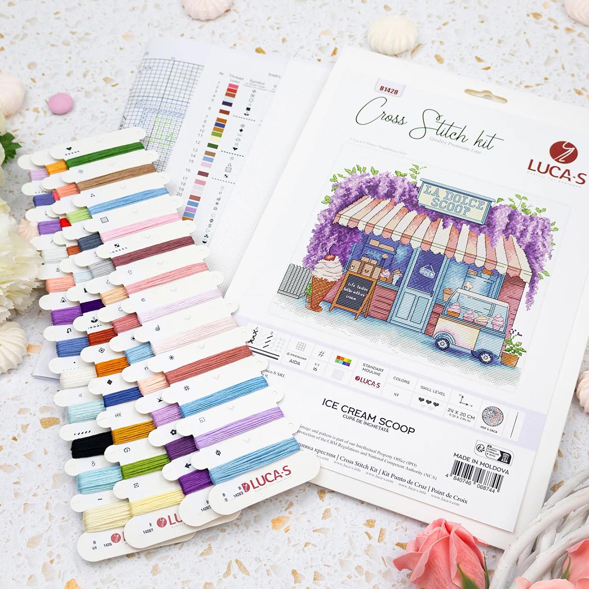 Набор для вышивания нитками Luca-S, Коробочка с мороженым, 24х20см