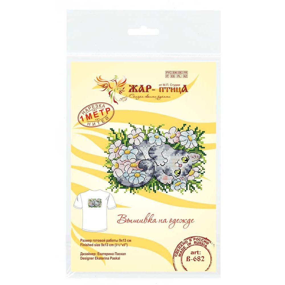 Набор для вышивания нитками МП Студия В-682, вышивка на одежде Раз ромашка, два ромашка... 9х13 см