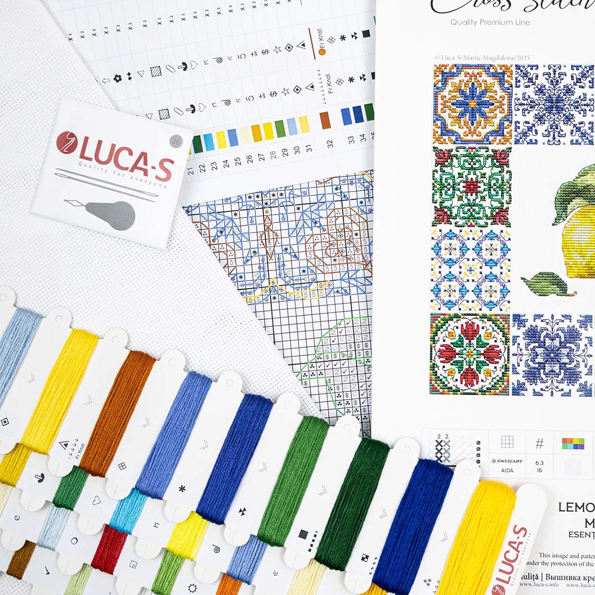 Набор для вышивания нитками Luca-S, Лимонная эссенция Средиземноморья, 25х20см