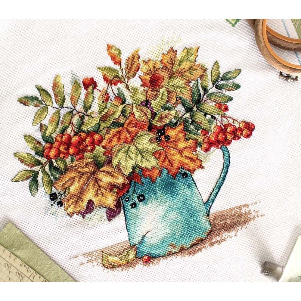 Набор для вышивания нитками МП Студия, Алые гроздья рябины 23х24 см