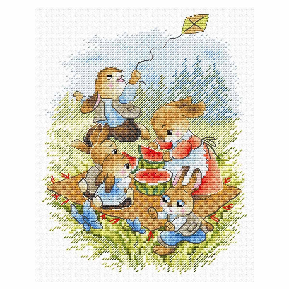 Набор для вышивания нитками МП Студия М-764, Арбузный пикник 20х16 см