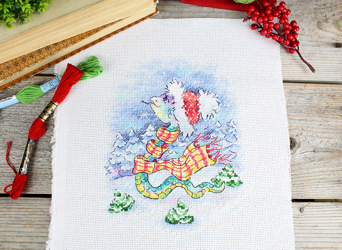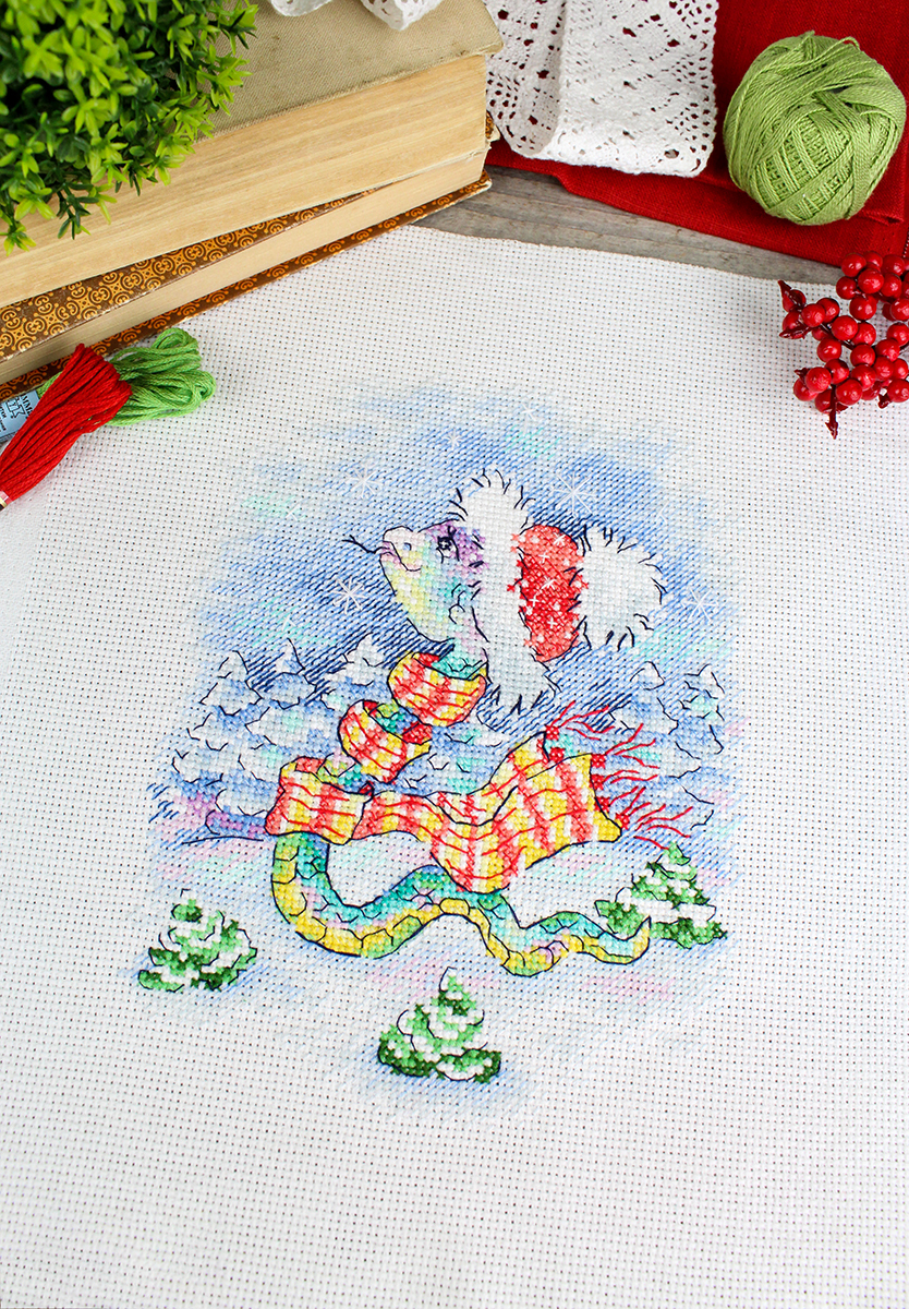 Состав: белая канва 14 каунта, нитки мулине ПНК им.Кирова 20 цветов, разобранные на органайзере, игла, схема и руководство по вышиванию.
