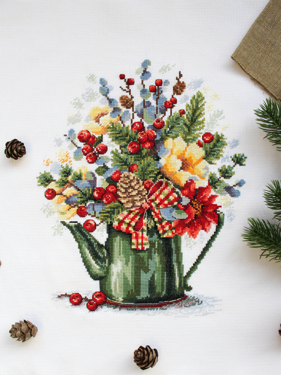 Состав: хлопчатобумажная канва 16 каунта, нитки мулине Гамма 29 цветов, разобранные на органайзере, игла, цвето-символьная схема и руководство по вышиванию