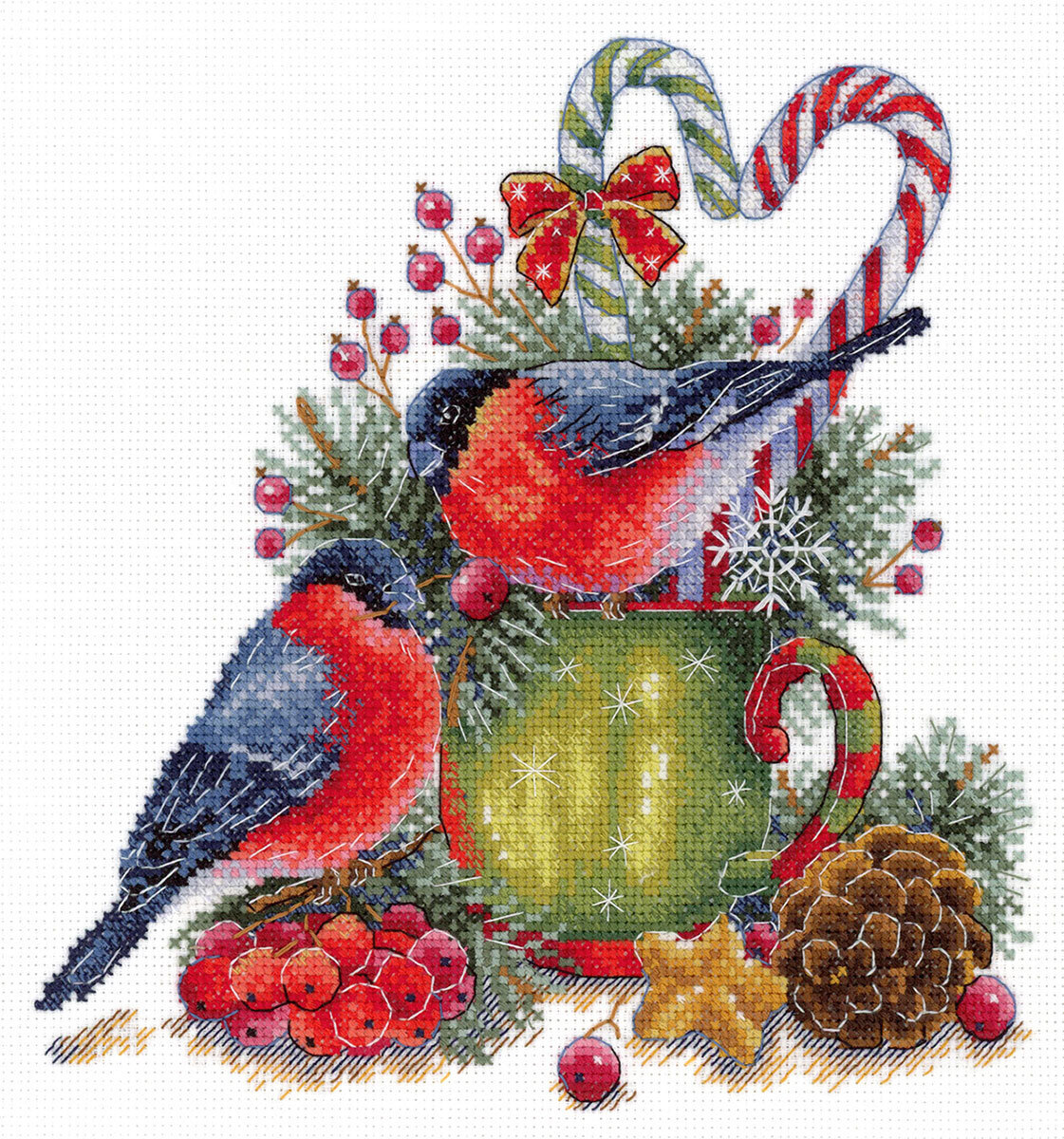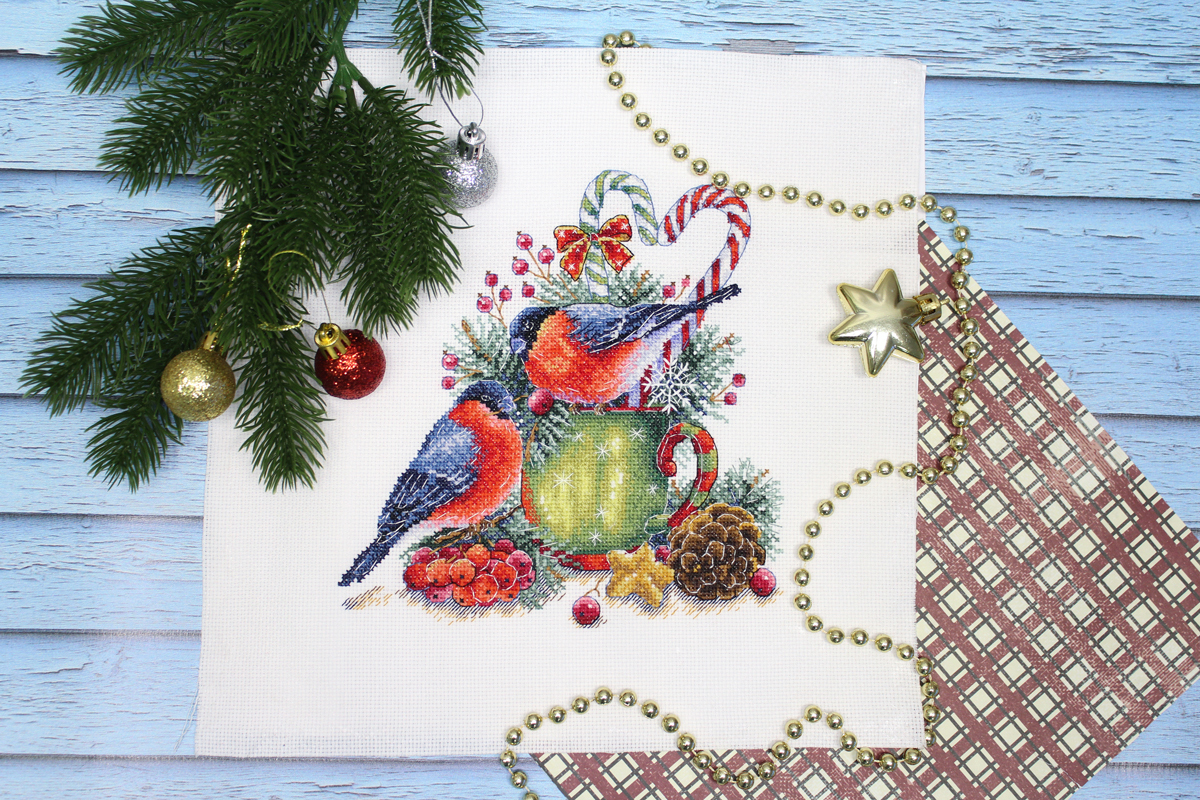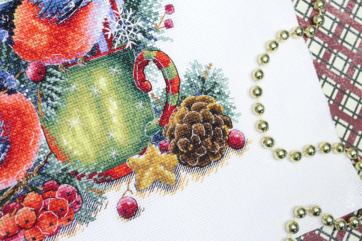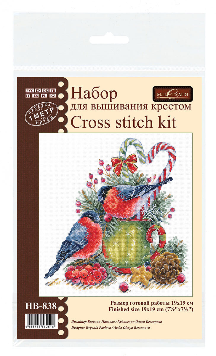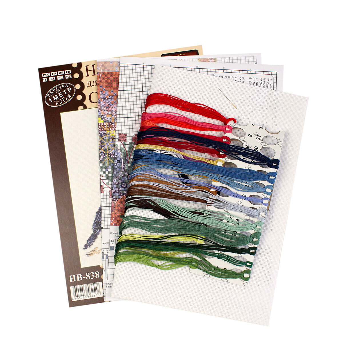 В состав набора входит: хлопчатобумажная канва 16 каунта, нитки мулине Гамма 29 цветов, разобранные на органайзере, игла, цвето-символьная схема и руководство по вышиванию.