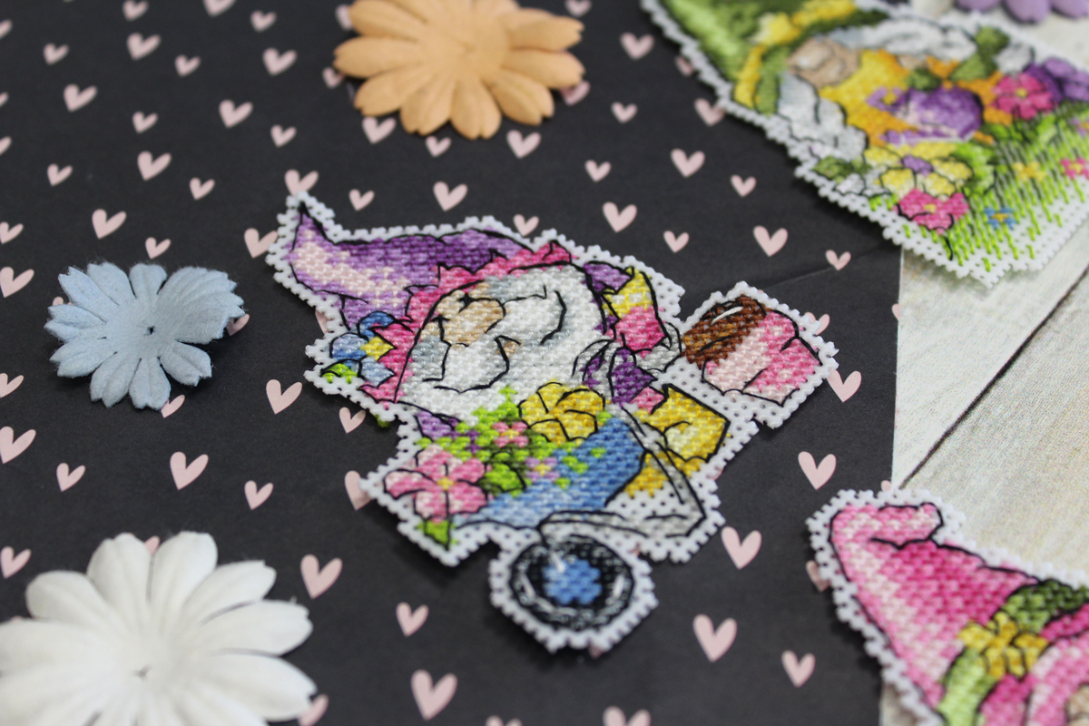Состав: канва пластиковая 14 каунта, нитки мулине 23 цветов, разобранные на органайзере, магнитное полотно, фетр, игла, схема и руководство по вышиванию.