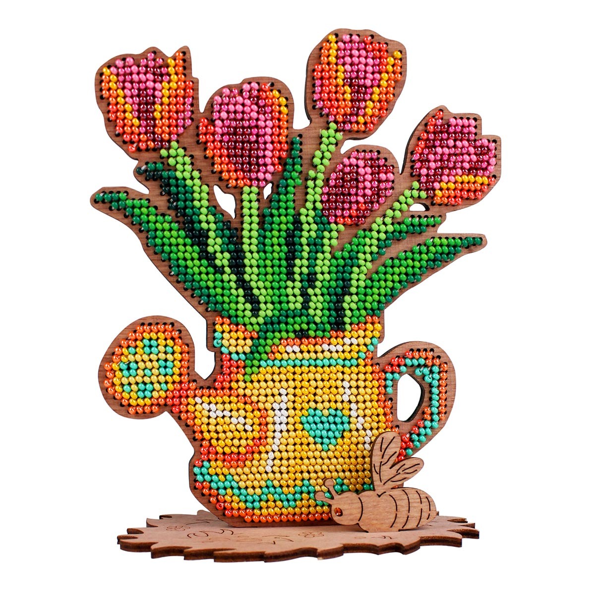 Набор для вышивания нитками МП Студия, на дереве Лейка с тюльпанами 14х12х6 см