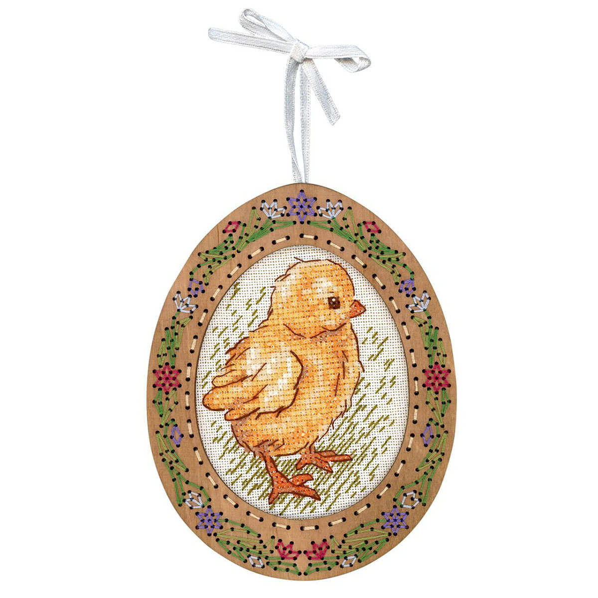 Набор для вышивания нитками МП Студия, на дереве Миниатюра. Цыплёнок на прогулке 14х11 см