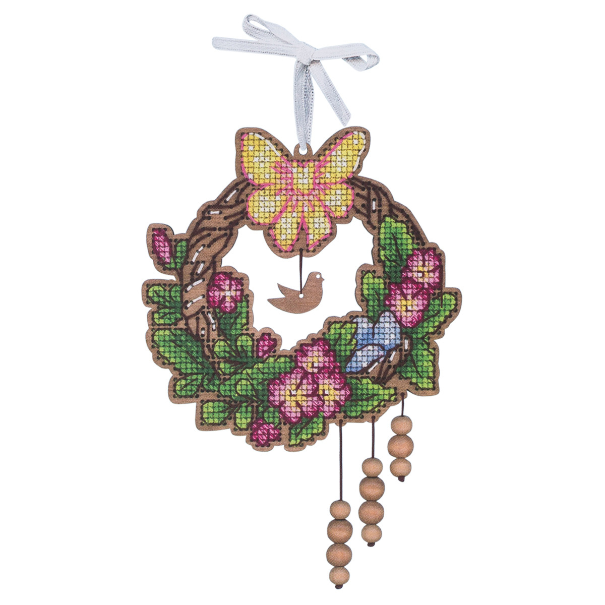 Набор для вышивания на деревянной основе Пасхальный венок 1 12х12 см, О-121