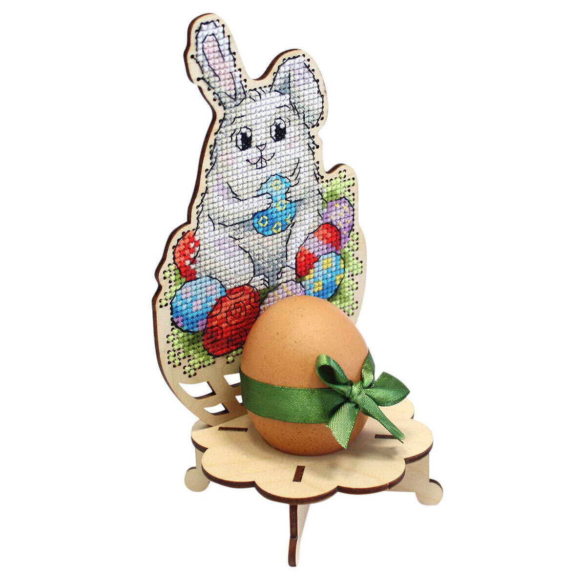 Набор для вышивания на деревянной основе Подставка под пасхальное яйцо. Зайчик 9х9х18см, О-050