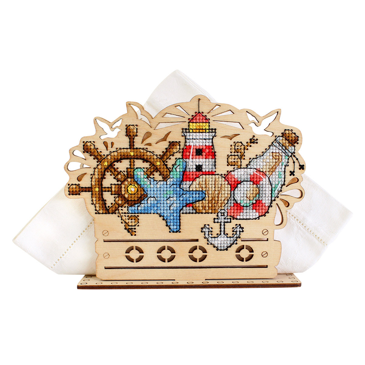 Набор для вышивания нитками МП Студия, на дереве Салфетница. Морские сокровища 12х15х5 см