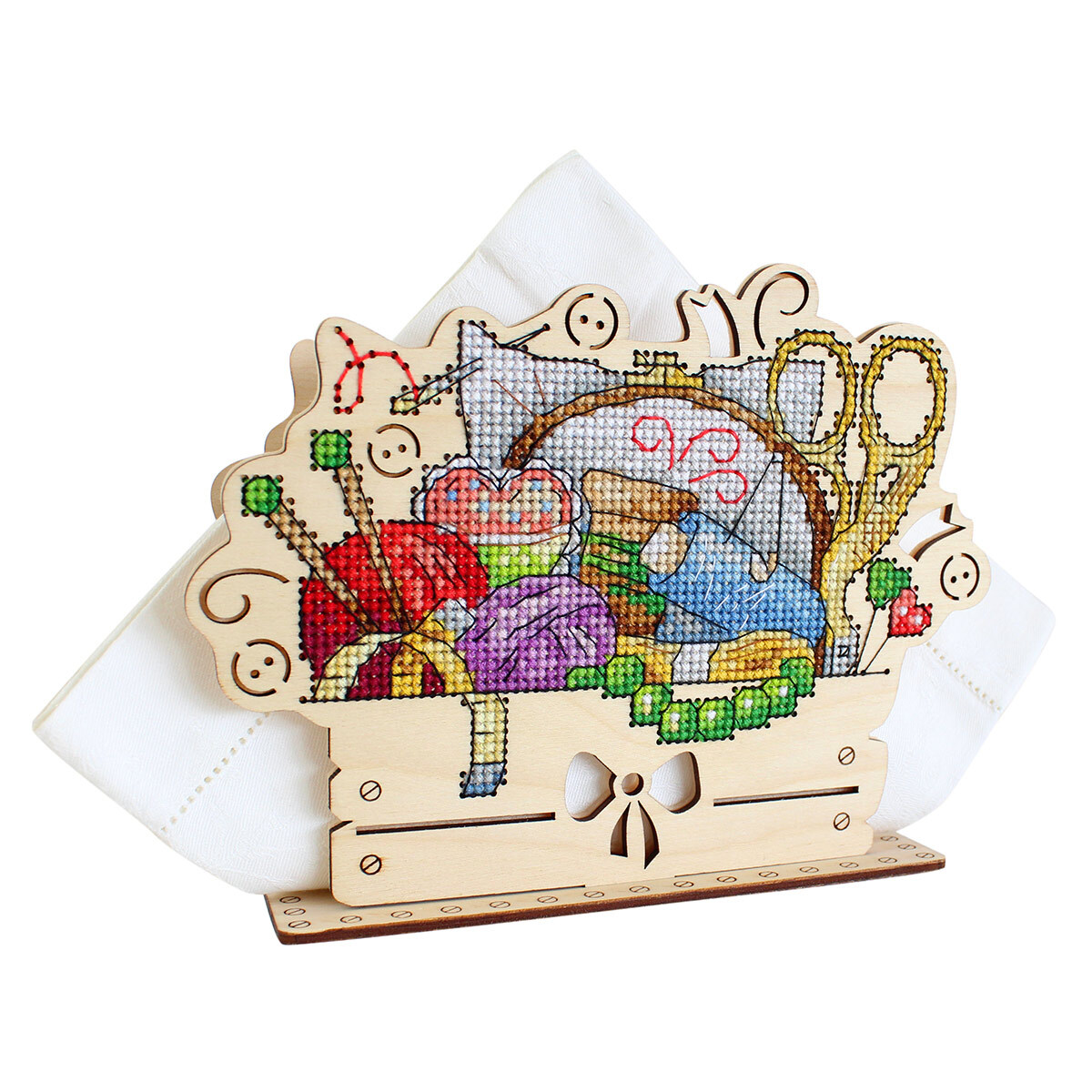 Набор для вышивания нитками МП Студия, на дереве Салфетница. Рукодельный уголок 13х17х5 см
