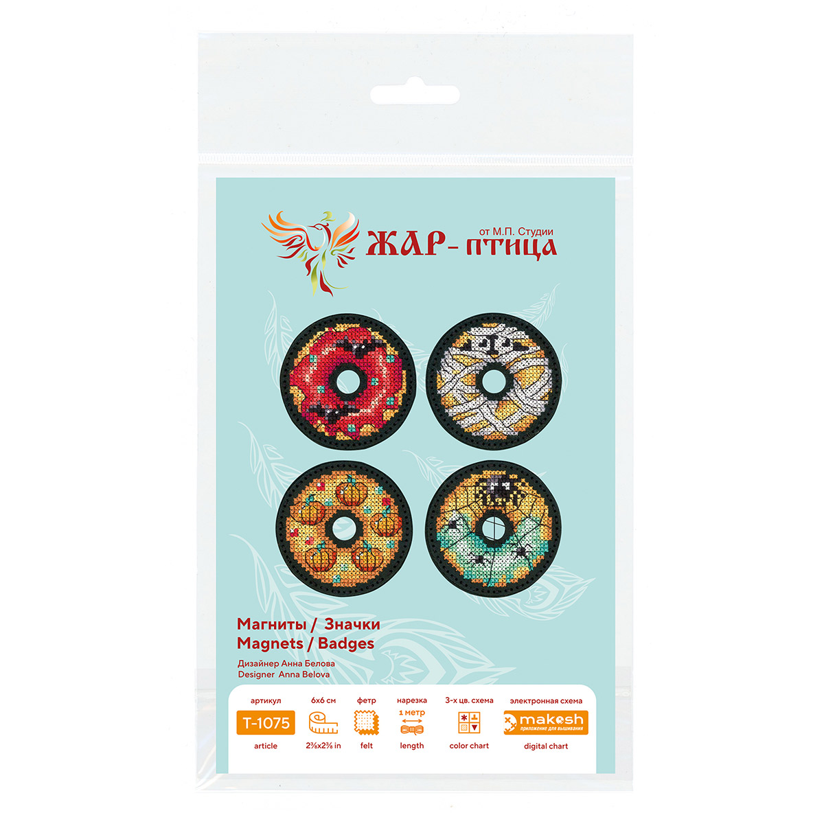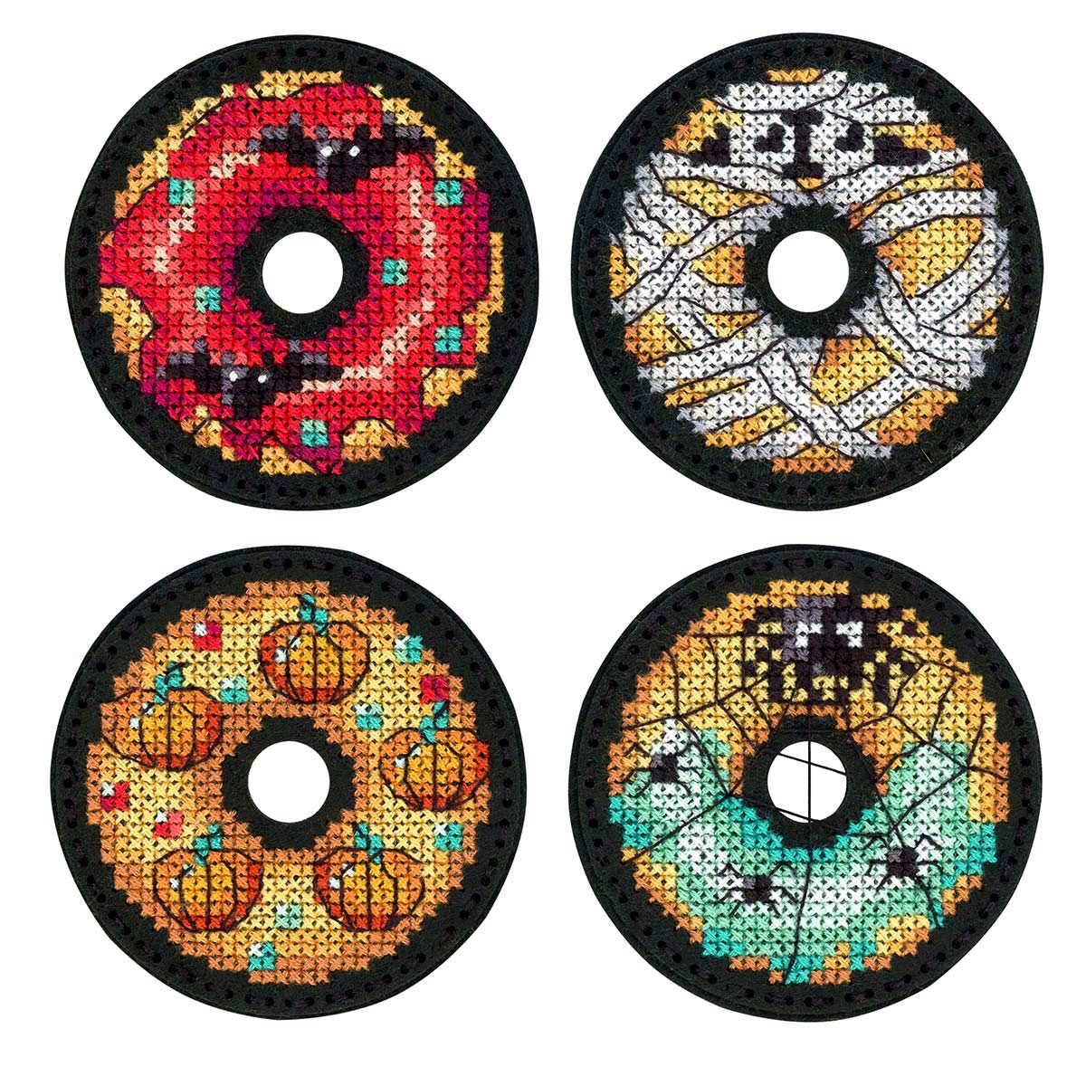 Набор для вышивания нитками МП Студия, на фетре Хэллоуинские пончики. Значки. Магниты 6х6см