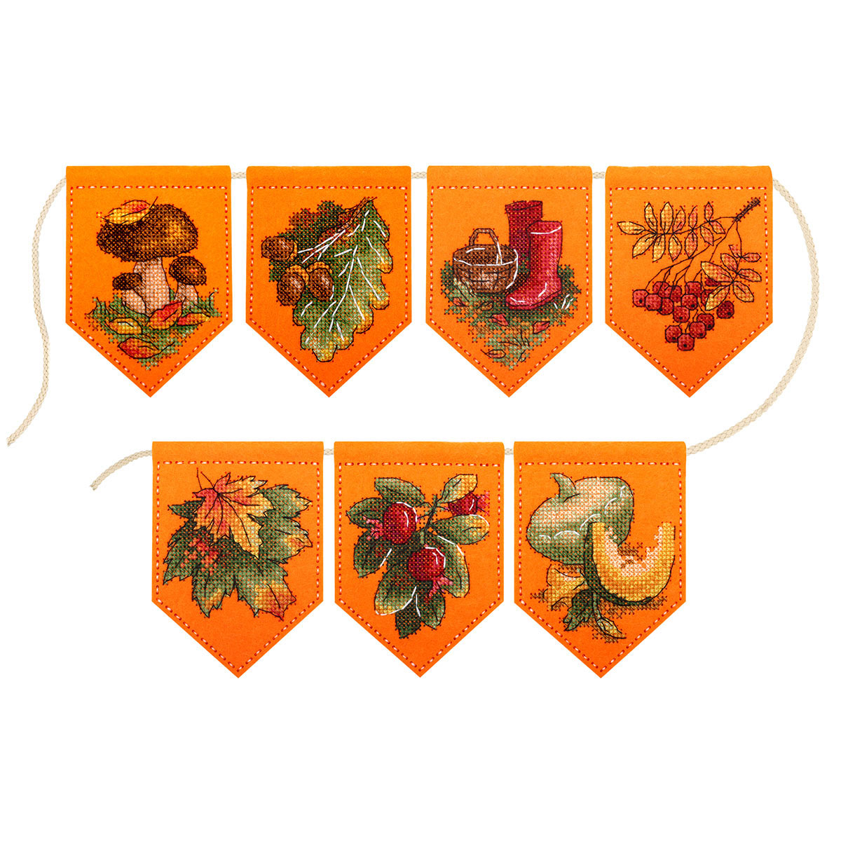 Набор для вышивания нитками МП Студия, на фетре Осенняя гирлянда оранжевая (7 флажков) 13х11см