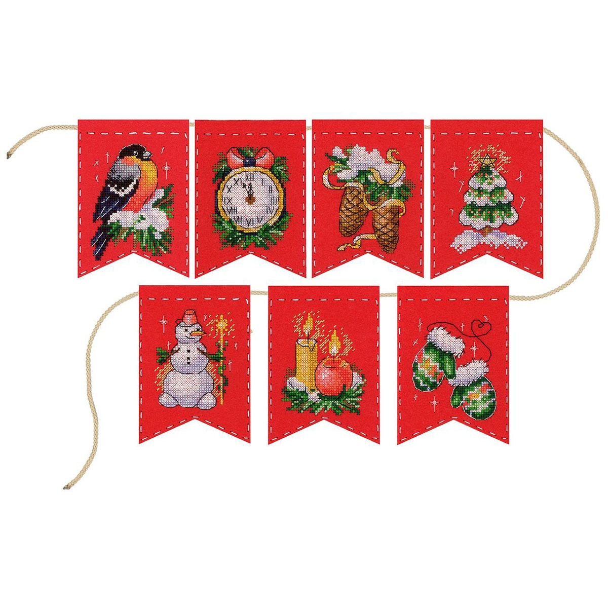 Набор для вышивания нитками МП Студия, на фетре Гирлянда Новогоднее настроение 7 флажков по 12х8 см