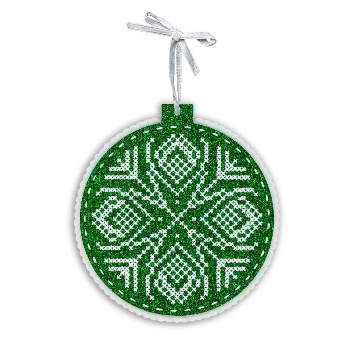 Набор для вышивания оригинального сувенира Хвойный узор на перфорированном фетре представляет собой уникальную возможность создать красивую вышивку с минимальными усилиями. Готовый сувенир станет ярким и оригинальным аксессуаром, который поднимет настроение и украсит любое пространство. Кроме того, данная игрушка отлично украсит вашу новогоднюю елочку. Благодаря перфорации, нанесённой на плотный фетр, стежки получаются ровными и одинаковыми по наклону. Этот готовый сувенир украсит ваш дом и станет уютным элементом интерьера. Процесс вышивания на фетре не требует особых навыков и подойдет как для опытных рукодельниц, так и для новичков. Вышивка выполняется в технике счетный крест, что позволяет тщательно проработать все детали изображения, делая его реалистичным и выразительным. В наборе: перфорированная основа из глиттированного зеленого фетра, белый фетр (толщина 1 мм) для обработки изнанки, хлопковое мулине 'ПНК им.Кирова' - 1 цв., атласная лента, черно-белая символьная схема, инструкция. Количество цветов: 1. Частичная зашивка. Размер: 11x10 см.
