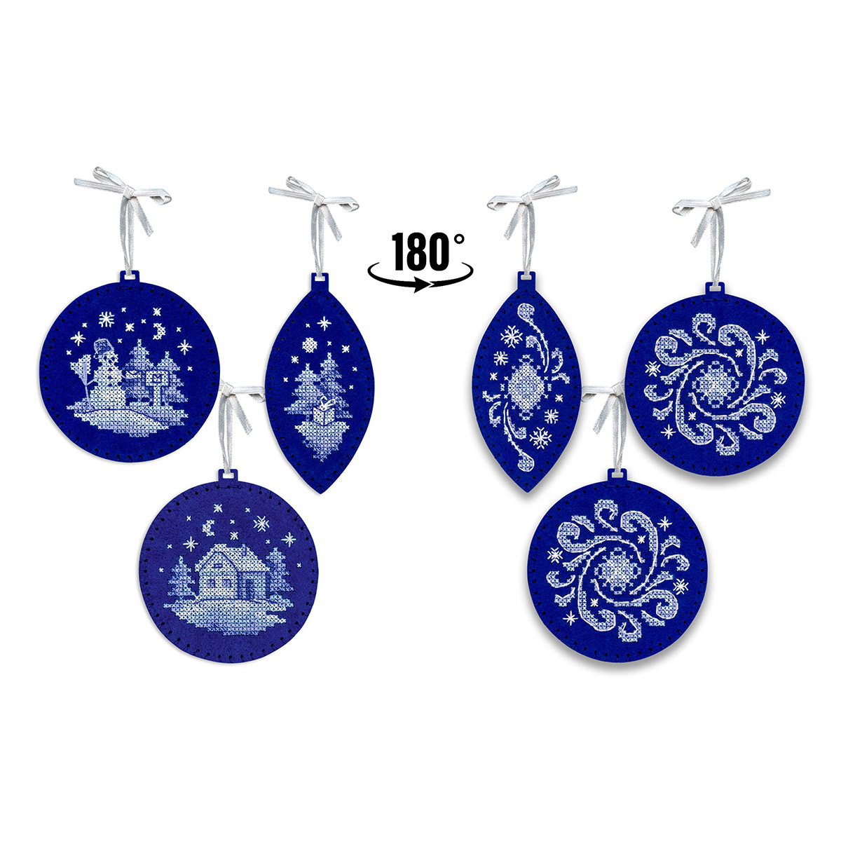 Набор для вышивания нитками МП Студия, на фетре Новогодние игрушки №1. Набор из 3 шт. 9х8, 9х8, 11х5 см