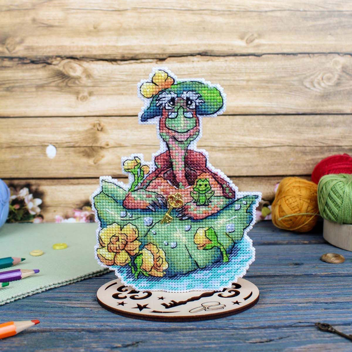 Набор для вышивания нитками МП Студия, на пластиковой канве Черепаха Тортилла 14х11см
