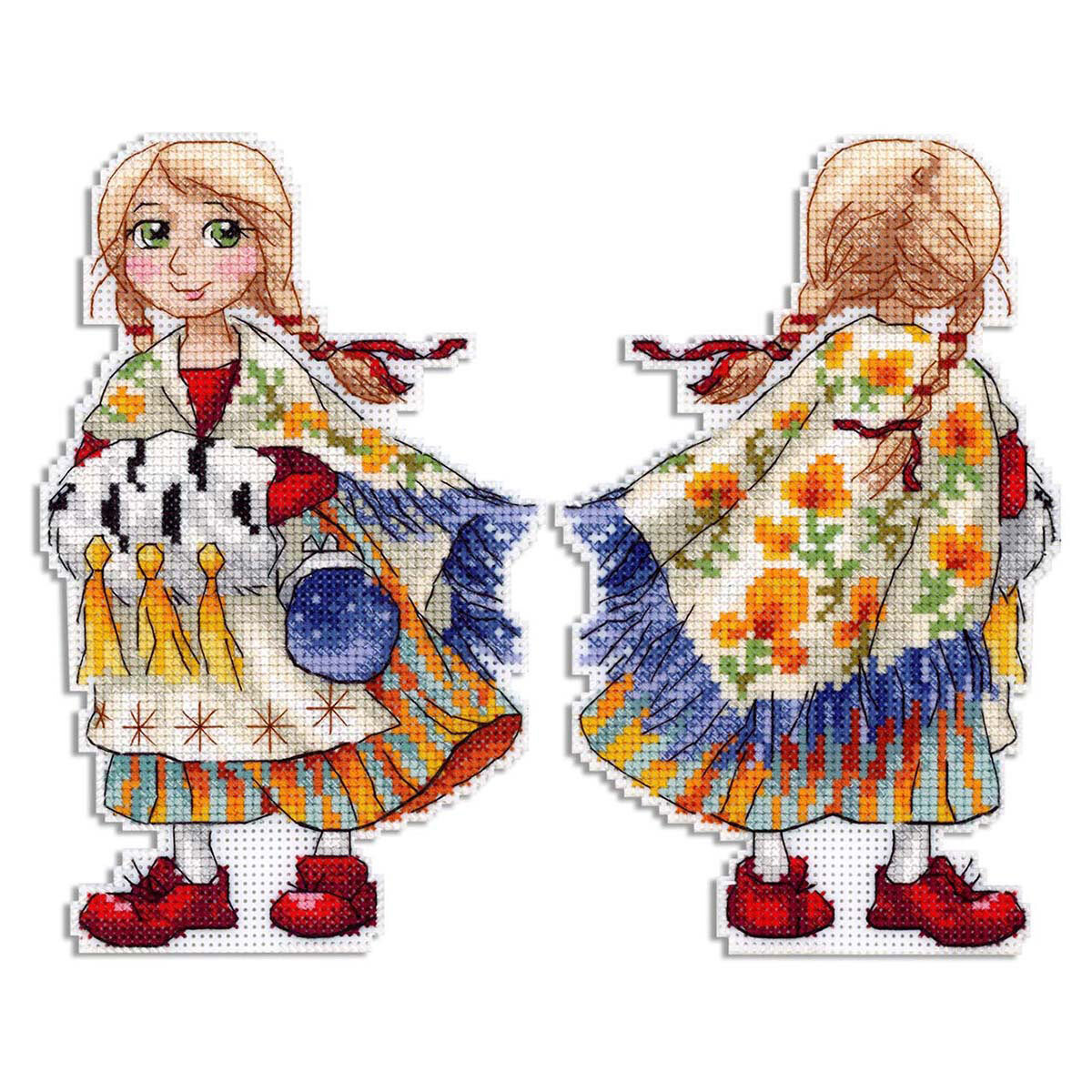 Набор для вышивания нитками МП Студия, пласт.канва Девочка в красных башмачках 17х11 см