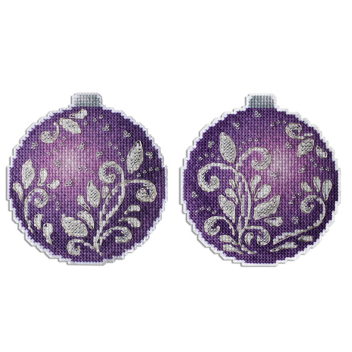 Набор для вышивания на пластиковой основе Новогодний шар Аметистовое сияние представляет собой уникальную возможность создать красивую и оригинальную вышивку с минимальными усилиями. Пластиковая канва прекрасно держит форму, поэтому пяльцы и рамки не нужны. Обе стороны шара вышиваются по схеме, затем вырезаются по линиям, указанным в инструкции, и соединяются изнаночными сторонами внутрь. При желании можно добавить между элементами ленту для подвешивания. Полученная вышивка представляет собой готовое произведение и не требует дополнительного оформления в виде багета или рамки. Основа из пластика не нуждается в специальной обработке. Этот сувенир украсит ваш дом к новогодним праздникам или станет отличным подарком близким людям. Процесс вышивания на пластиковой канве не требует особых навыков и подойдет как для опытных рукодельниц, так и для новичков. Вышивка выполняется в технике счетный крест, что позволяет тщательно проработать все детали изображения, делая его реалистичным и выразительным. В наборе: канва пластиковая 14 ct белая, хлопковое мулине 'ПНК им.Кирова 8 цв., бисер 1 цв., игла, черно-белая символьная схема, инструкция. Количество цветов: 8. Полная зашивка. Размер: 10x10 см.