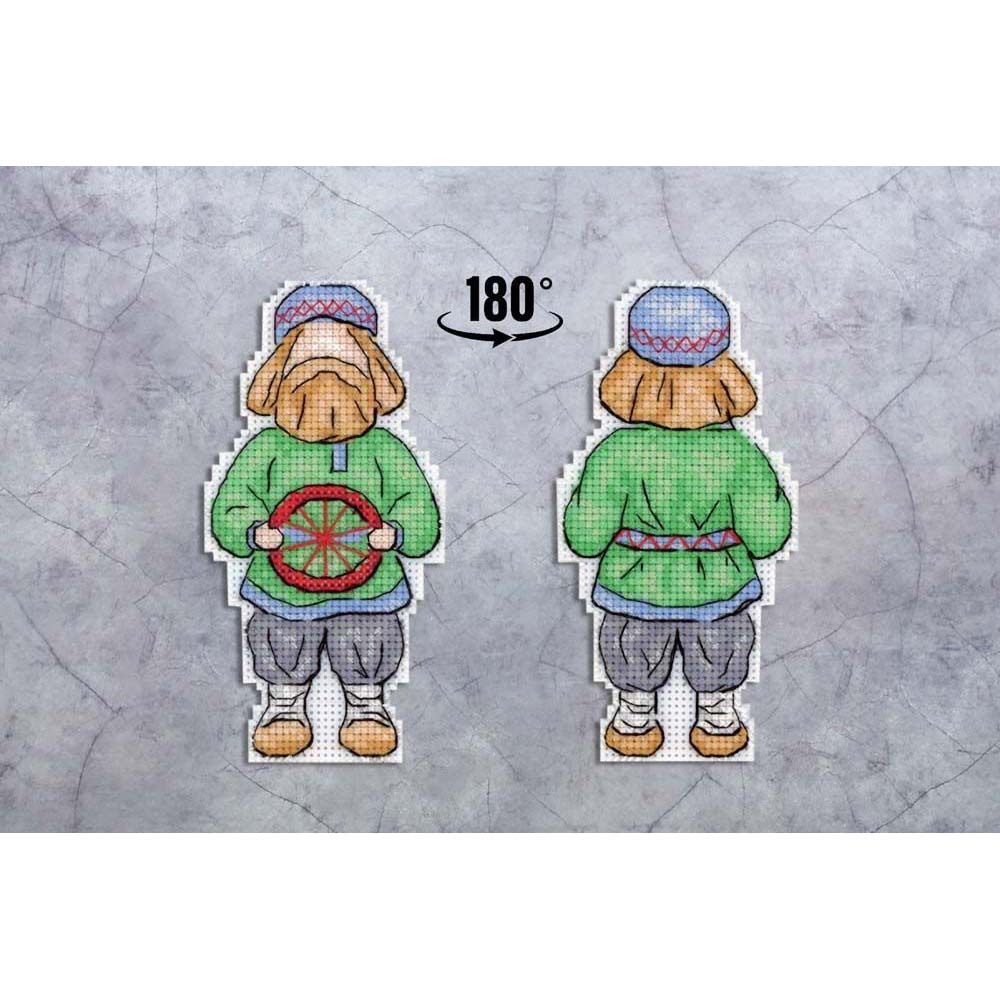 Хотим предложить вам нечто совершенно оригинальное- вышивку на пластиковой канве Оберег Спиридон-солнцеворот. В своих руках Спиридон-солнцеворот держит колесо, повернув которое он может изменить жизнь или какую-то конкретную ситуацию в лучшую сторону. Спиридона изготавливают для того, чтобы вызвать в жизни положительные желаемые перемены. Обе стороны игрушки вышиваются согласно схеме, затем вырезаются по контуру, обозначенному в руководстве по вышиванию, и сшиваются изнаночными сторонами внутрь. Набор включает в себя все необходимое: белая пластиковая канва 14 каунта, нити мулине ПНК им.Кирова 16 цветов, разобранные на органайзере, игла, схема и руководство по вышиванию.