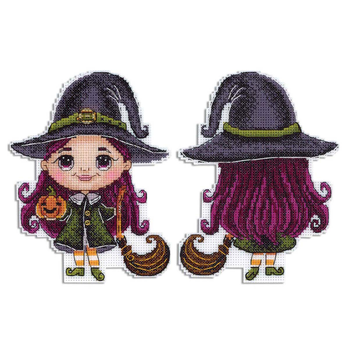 Набор для вышивания нитками МП Студия, пласт.канва Очаровательная ведьмочка 16х12 см