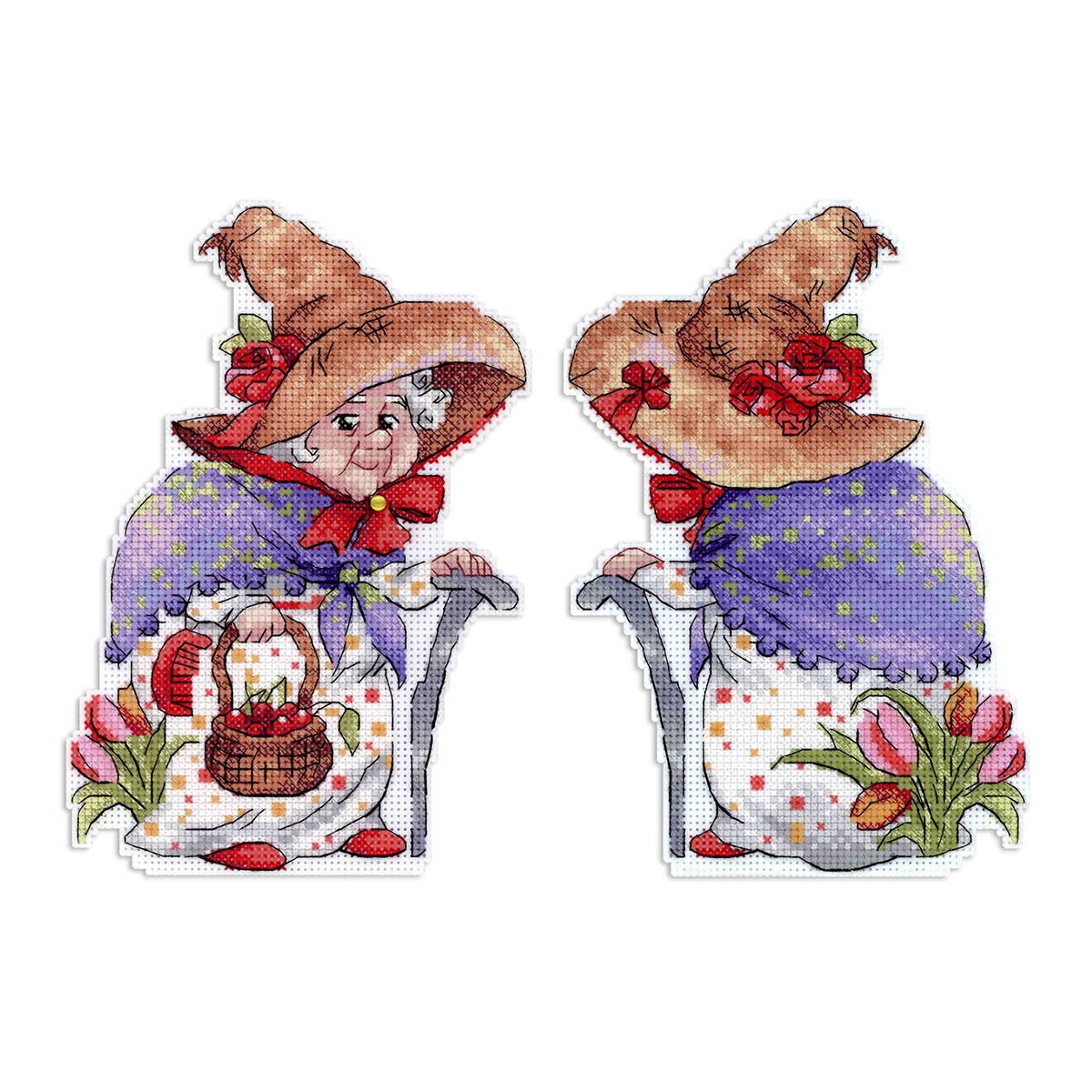 Набор для вышивания нитками МП Студия, пласт.канва Тётушка с розами 18х13 см