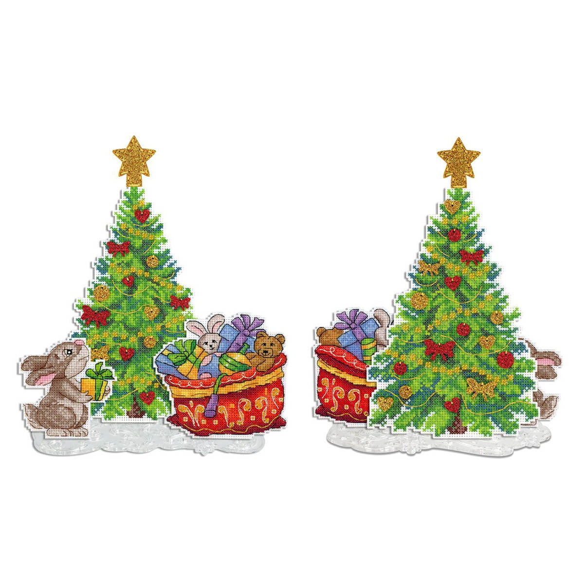 Набор для вышивания нитками МП Студия Р-945, пласт.канва Ёлочка с подарками (Комплект: 3 сюжета + подставка) 20х13, 8х8, 10х11 см
