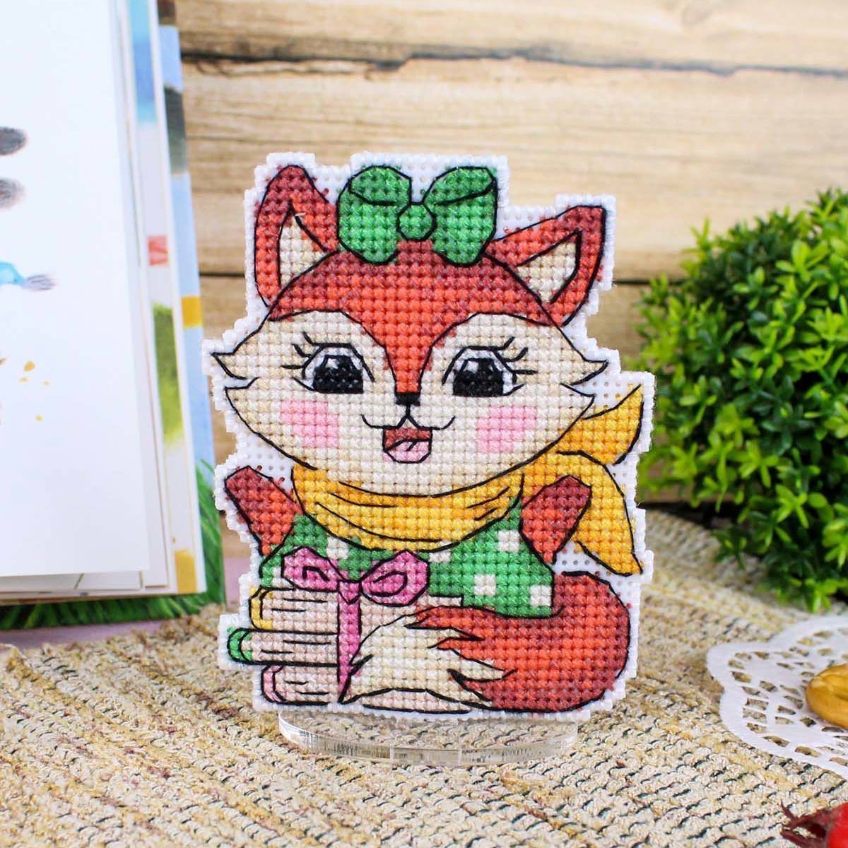 Набор для вышивания нитками МП Студия, на пластиковой канве Весёлая лисичка 9х7см