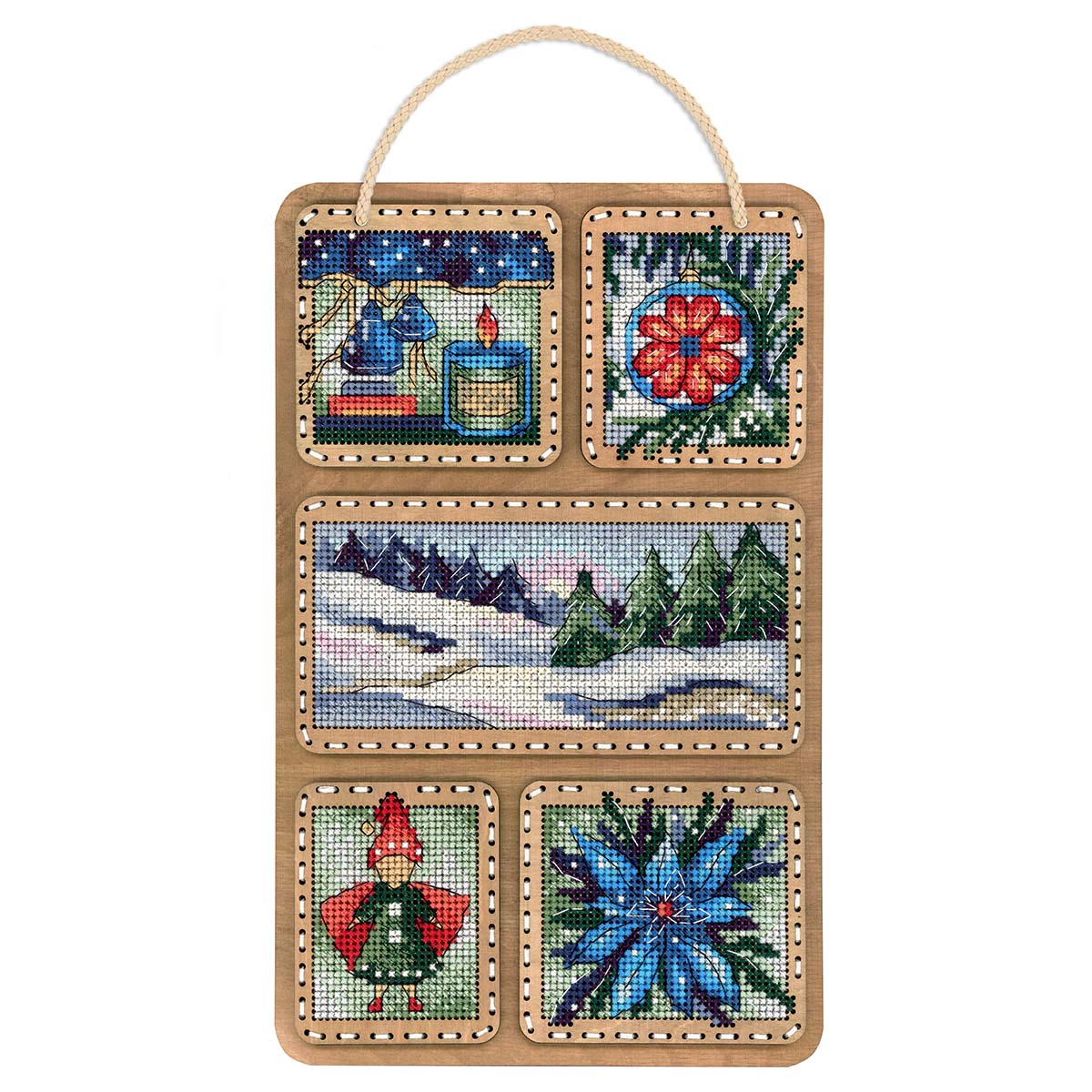 Вышивка крестиком набор Зимний коллаж 26х17 представляет собой уникальную возможность создать красивый и оригинальный сувенир на деревянной основе с минимальными усилиями. Деревянная рамка не только обеспечивает прочность и долговечность работы, но и создает особый эстетический эффект, подчеркивая натуральность и теплоту материала. Полученная вышивка крестом представляет собой готовое произведение и не требует дополнительного оформления в виде багета. Основа из дерева не нуждается в специальной обработке, но при желании вы можете предварительно покрыть края лаком, морилкой или даже расписать акриловыми красками. Важно помнить: дайте покрытию полностью высохнуть перед продолжением работы, чтобы избежать повреждений вышивки и сохранить целостность ниток. Процесс вышивания на деревянной основе не требует особых навыков и подойдет как для опытных рукодельниц, так и для новичков. Вышивка позволяет тщательно проработать все детали изображения, делая его реалистичным и выразительным. Вышивка крестиком украсит ваш дом или станет отличным подарком близким людям. Набор для вышивания крестиком включает в себя все необходимые материалы для создания неповторимого полотна, подробная инструкция позволит легко разобраться с тонкостями вышивки даже начинающим. В наборе: перфорированная деревянная основа, мулине ПНК им. Кирова, разобранные на органайзере, игла, шнур, деревянный задник, двухцветная символьная бумажная схема и электронная схема Makosh, инструкция по выполнению работы.