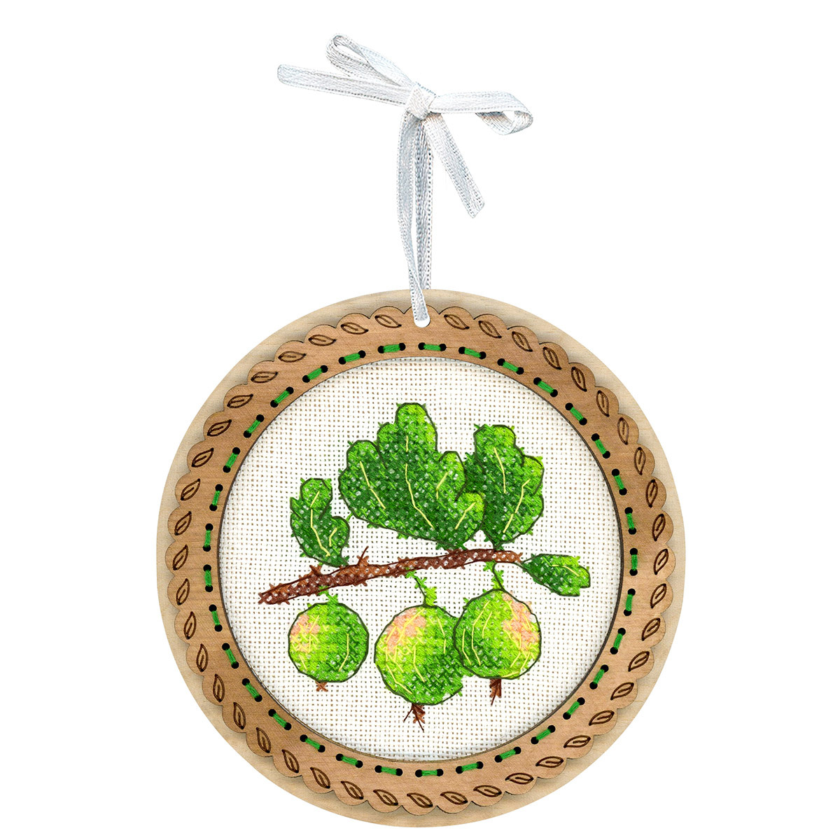 Набор для вышивания нитками МП Студия О-130, на деревянной основе Миниатюра. Дачные ягоды. Крыжовник 10х10 см