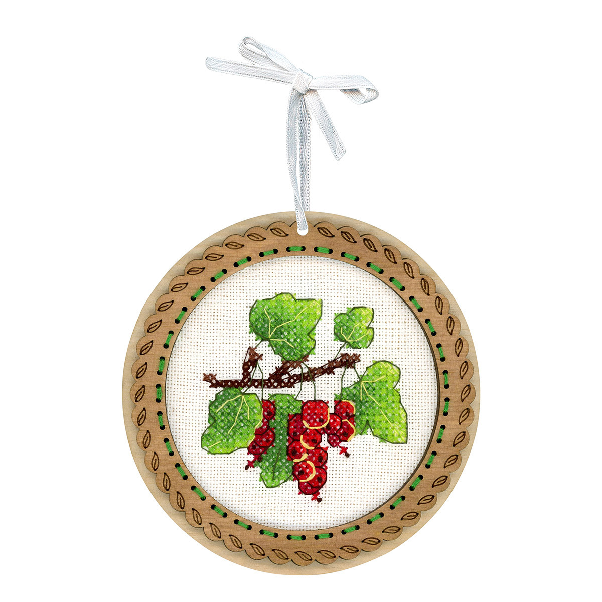 Набор для вышивания нитками МП Студия О-131, на деревянной основе Миниатюра. Дачные ягоды. Смородина 10х10 см
