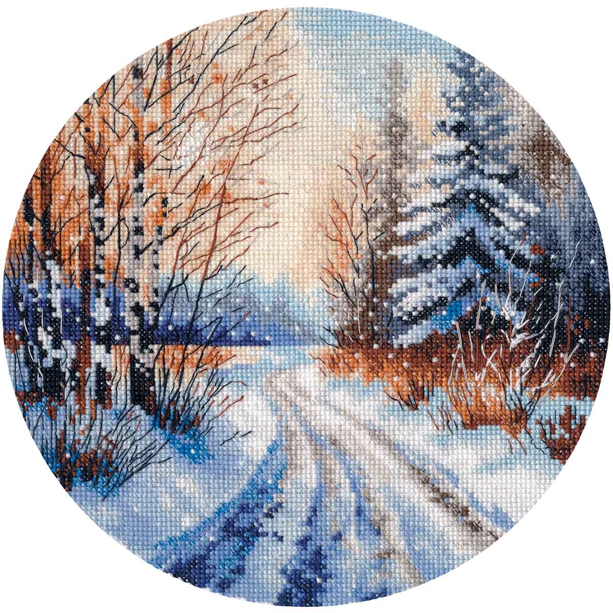 Набор для вышивания нитками Овен 1727, Заснеженная дорога 20х20 см