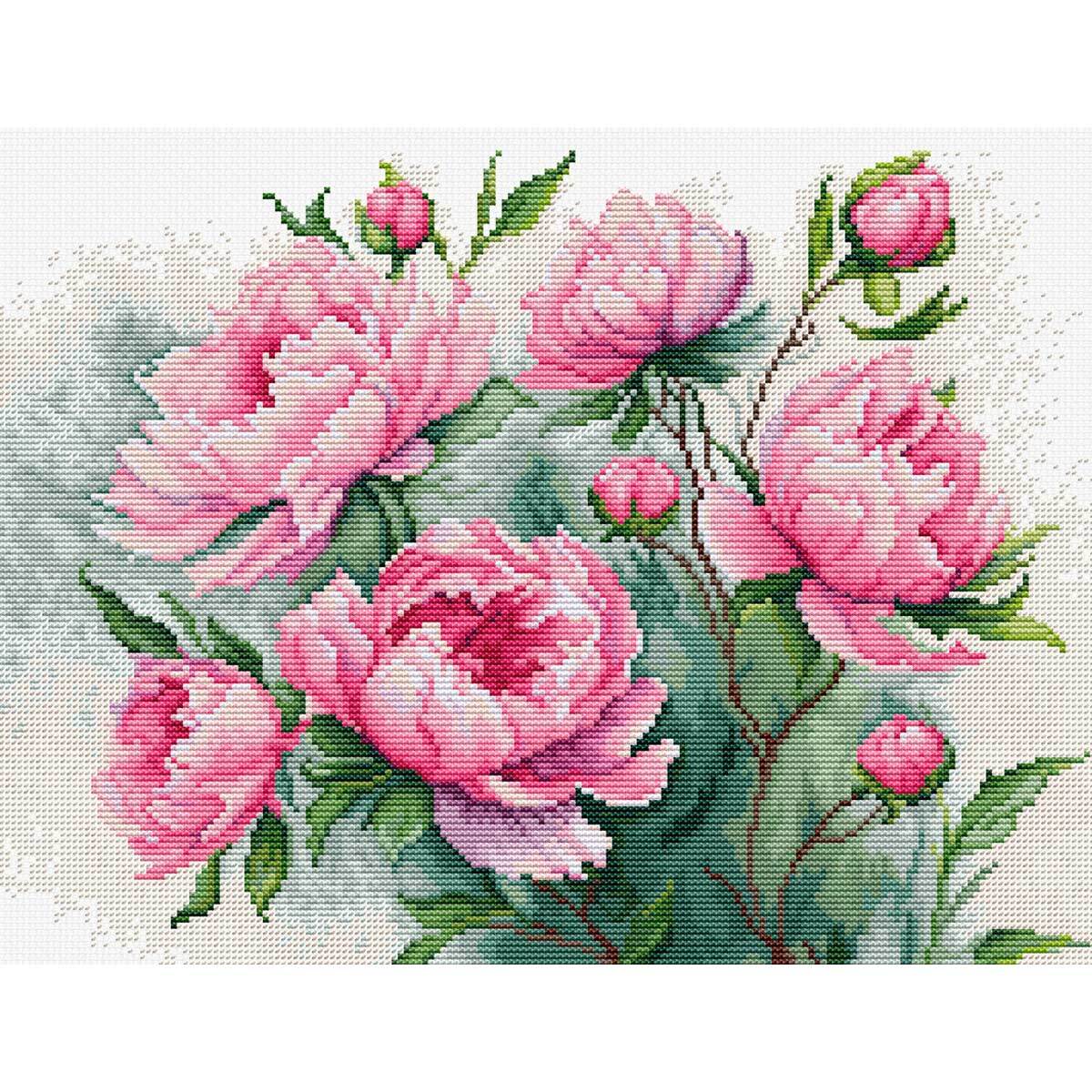 Набор для вышивания нитками Luca-S, Очарование пионов 29х22 см