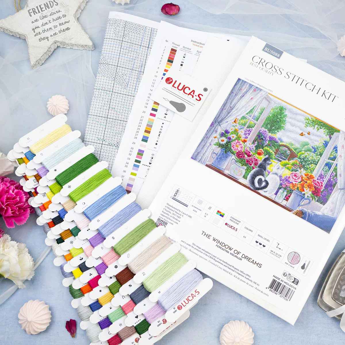 Вышивка крестиком набор Окно мечты от Luca-S – настоящее путешествие в мир волшебства и творческого самовыражения. Перед вами завораживающая картина, которая постепенно оживает под вашими умелыми руками. Каждый стежок, каждый узелок – это маленький шаг к созданию уникального полотна, которое станет не только украшением вашего дома, но и хранителем теплых воспоминаний о часах, проведенных за увлекательным занятием. Готовая вышивка изображает двух влюбленных котов, которые с мечтательным видом смотрят в окно, словно погружаясь в мир грёз и фантазий. Набор для вышивания Окно мечты – это прекрасный подарок для тех, кто ценит ручную работу, кто ищет умиротворения в творчестве и наслаждается красотой тонких деталей. Набор для вышивания крестиком - идеальный презент любителям вышивания, друзьям, маме, подруге на день рождения, Новый год. Luca-S позаботились о вашем комфорте, предоставив все необходимые материалы высочайшего качества. Нитки ярких и насыщенных цветов отличаются прочностью и износостойкостью, чтобы вы могли наслаждаться результатом своего труда долгие годы. Набор снабжён удобным картонным органайзером для ниток, где каждая нить аккуратно размещена и подписана, соответствуя обозначениям на схеме. Забудьте о сложностях и неудобствах. С набором Окно мечты от Luca-S вы получите всё необходимое для создания настоящего шедевра. Наслаждайтесь процессом, почувствуйте радость от творчества, и результат вашей работы будет долго радовать вас и ваших близких. Это не просто вышивка крестиком, это вложение души и времени, это история, рассказанная стежок за стежком.