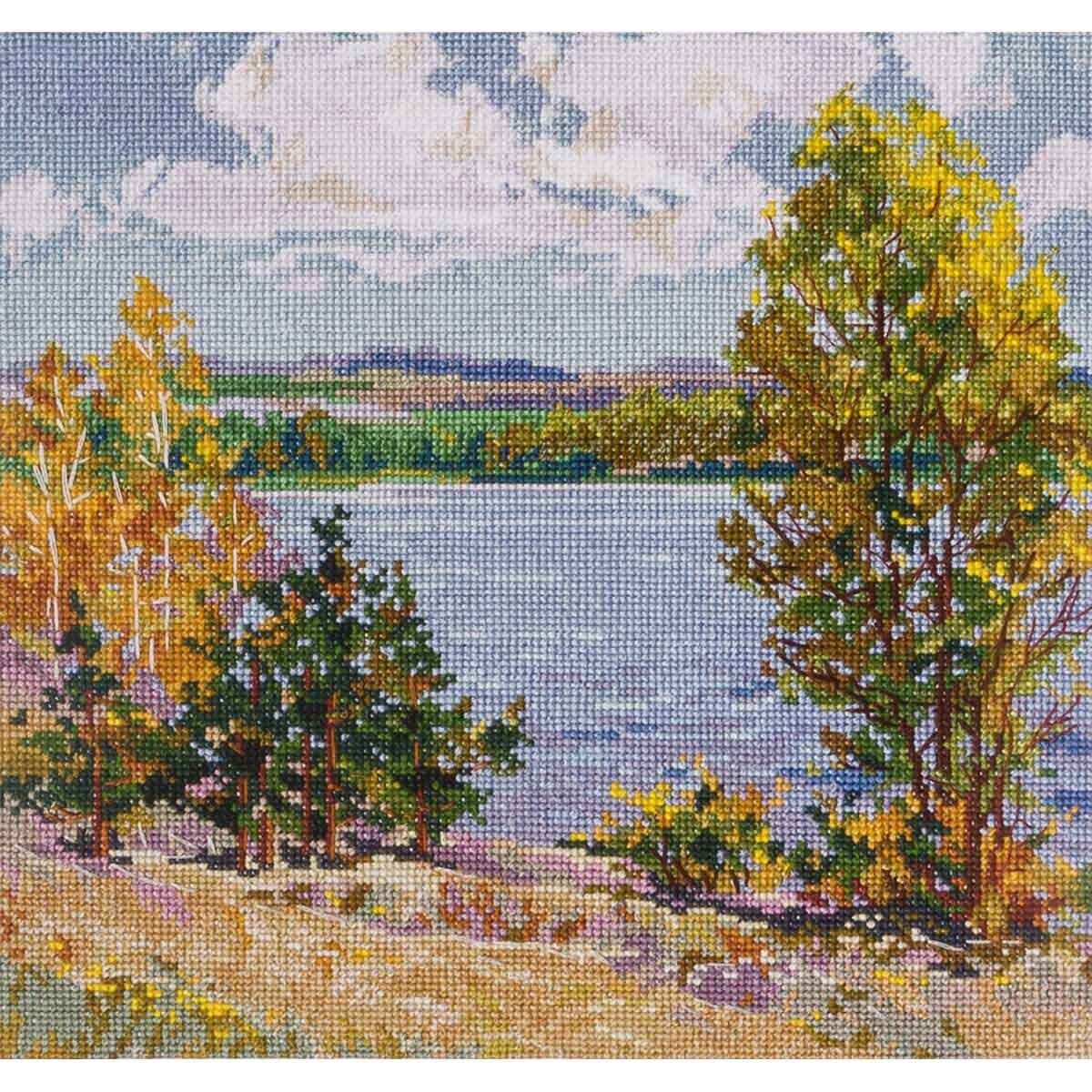 Набор для вышивания нитками Овен 1651, Осень у реки, 23х23 см