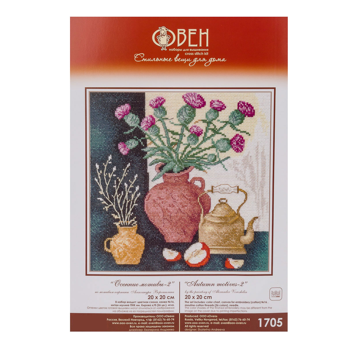 Вышивка крестиком набор Осенние мотивы -2 20х20 см от бренда Овен – это не просто комплект материалов для рукоделия, а уникальная возможность создать шедевр своими руками для дома или в подарок близкому человеку. Тёплая и уютная вышивка, изображающая натюрморт с изящной вазой, наполненной яркими осенними цветами, создают атмосферу золотой осени, уюта и ностальгии по тёплым вечерам. Готовая вышивка крестиком станет идеальным акцентом в интерьере, напоминая о красоте осенних перемен и простых радостях жизни. Этот набор для вышивания ориентирован как на опытных мастериц, так и на начинающих рукодельниц. Если будете следовать указаниям инструкции и делать ровные стежки, то вскоре заметите, как под вашей рукой начинает проявляться изображение с богатой цветовой палитрой и мягкими переливами оттенков. Набор от бренда Овен вышивка крестом Осенние мотивы -2 не только разовьет ваше творческое воображение, но и подарит вам моменты удовольствия и покоя в процессе творчества. Вышивка крестом - это увлекательное занятие, которое помогает расслабиться и снять стресс. Оно также развивает творческие способности, улучшает концентрацию и мелкую моторику рук. Благодаря продуманным схемам и высококачественным материалам вышивка крестиком получается реалистичной и эффектной. В наборе: канва 16 белая, нитки ПНК им. Кирова, цветная символьная схема, электронная схема Сага, игла, инструкция.
