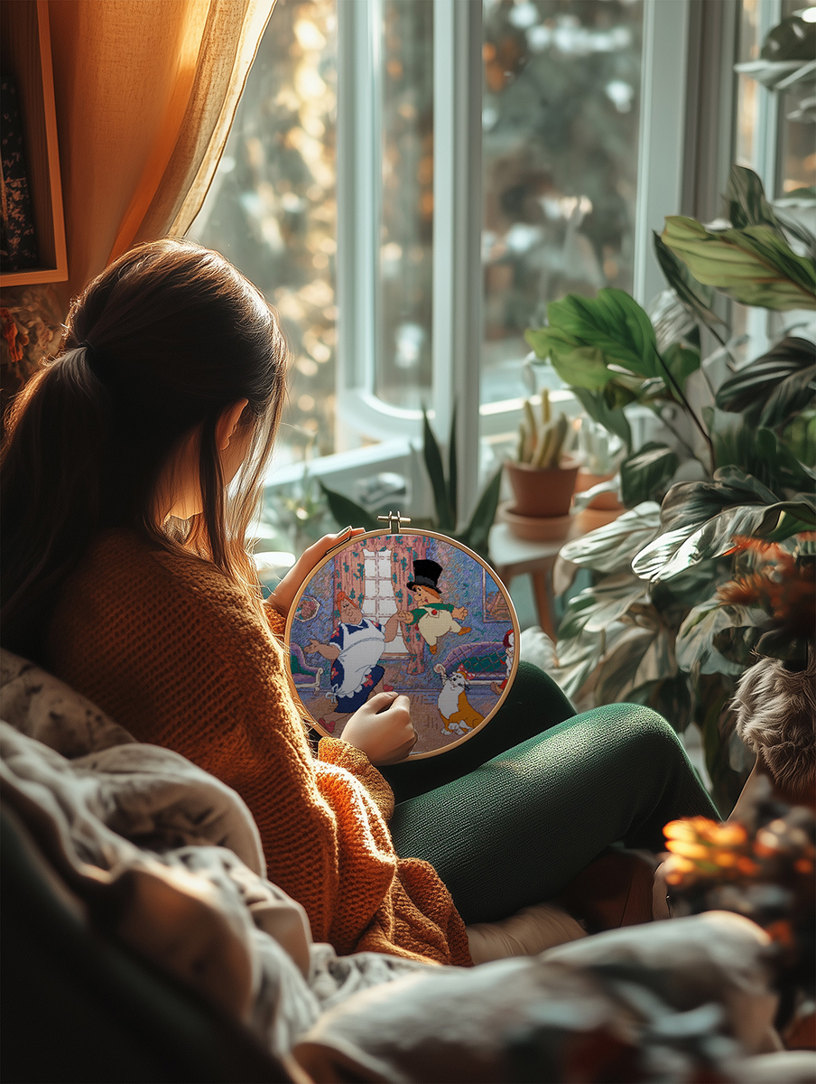 Набор для вышивания нитками Panna CMF-D-7543, В веселой компании, 32х23 см