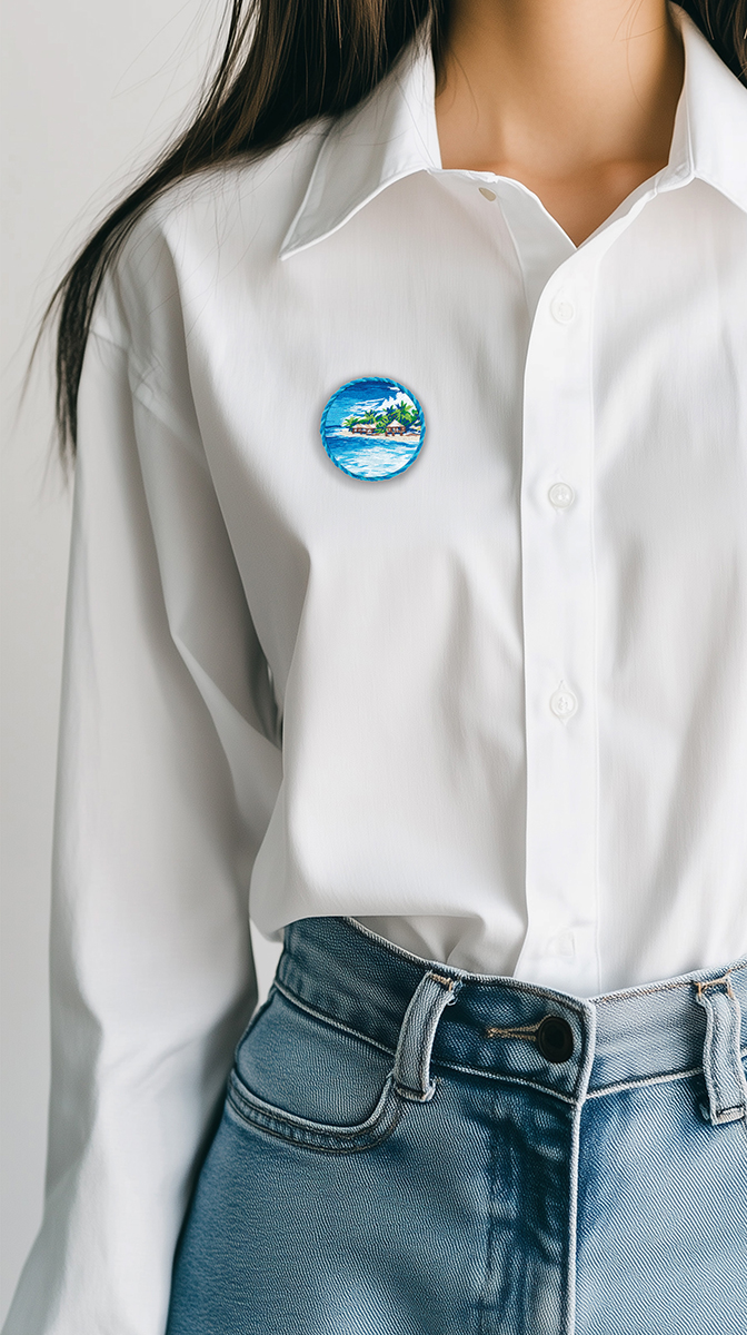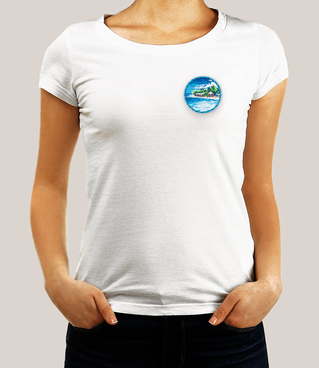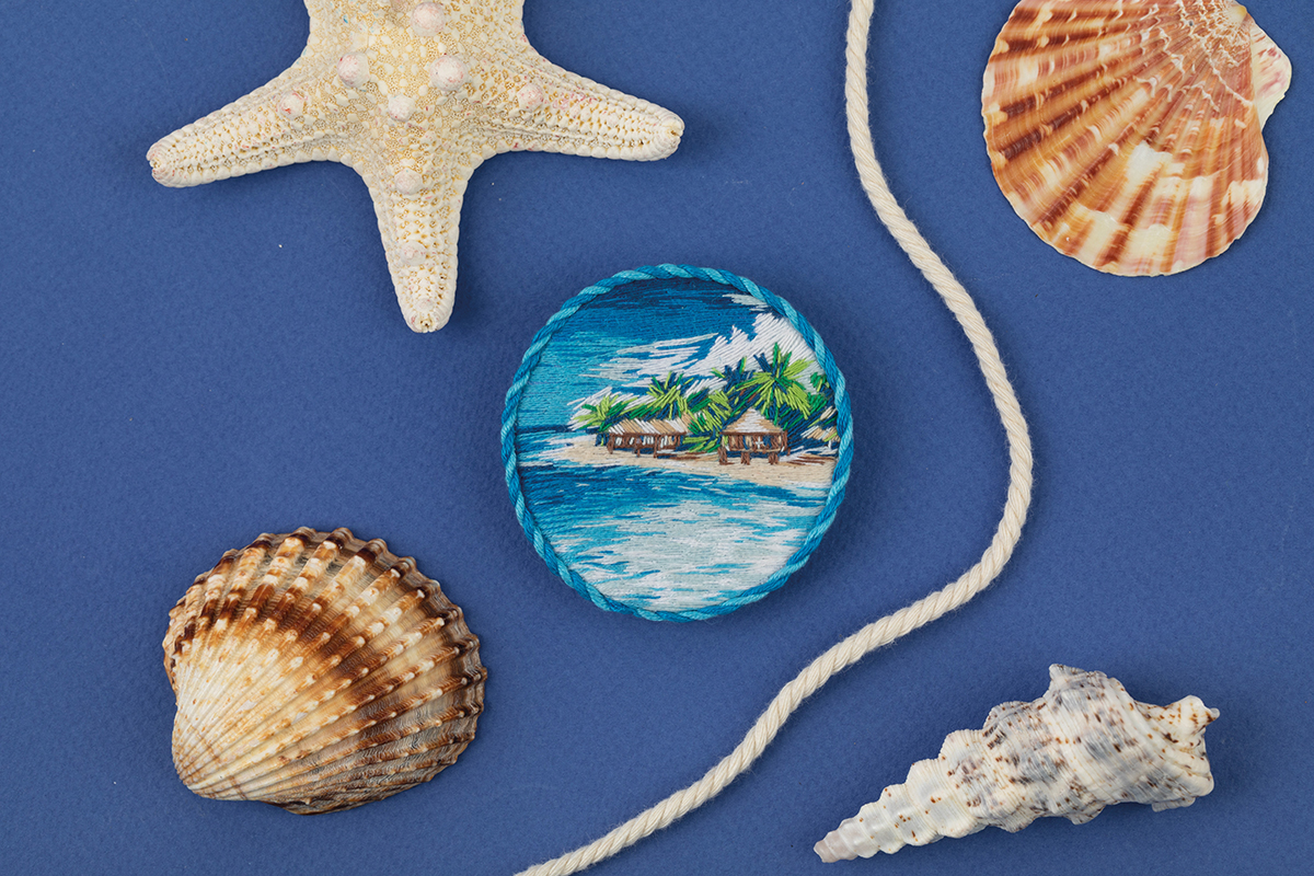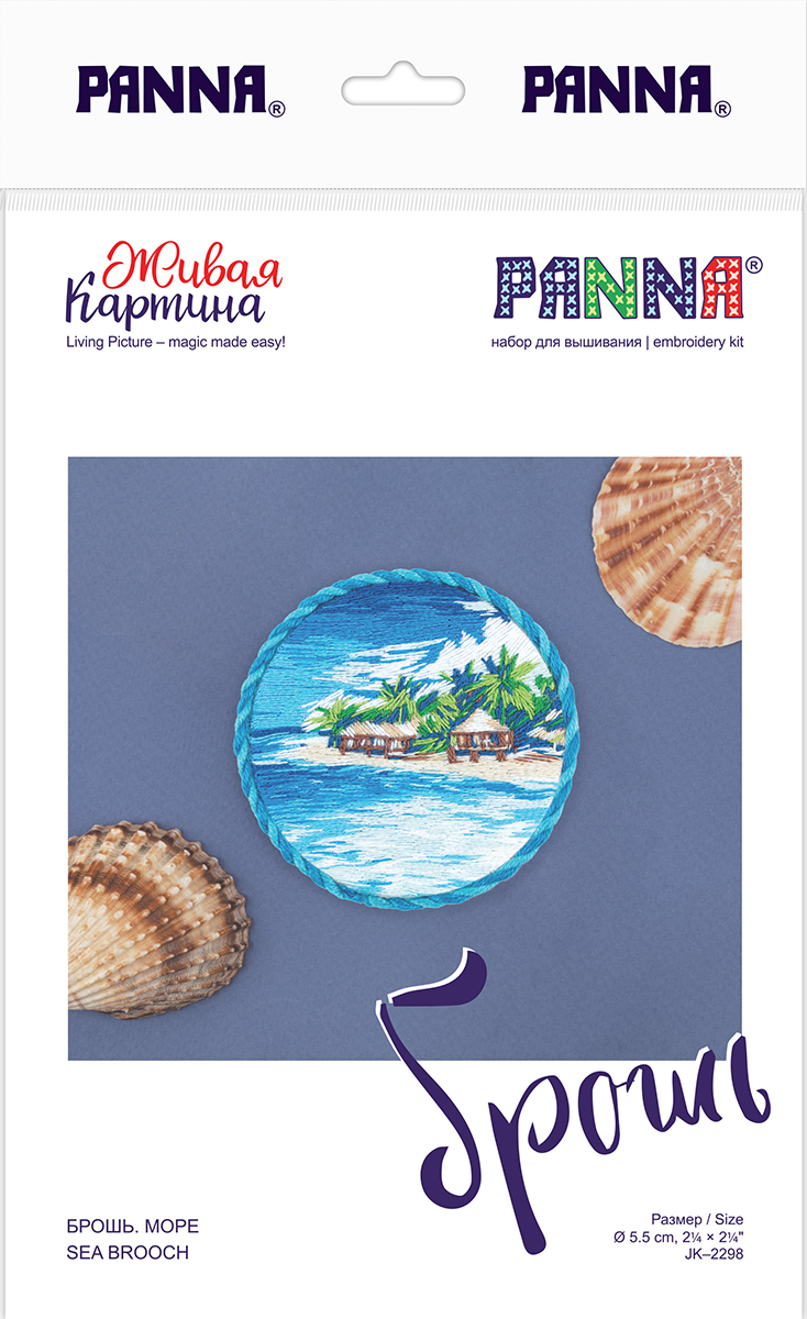 Набор для вышивания нитками Panna Живая картина JK-2298, Брошь. Море, 5.5х5.5 см