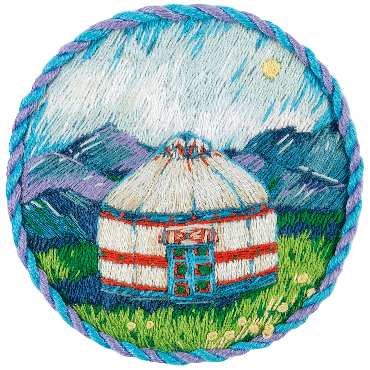 Набор для вышивания нитками Panna Живая картина JK-2330, Брошь. Юрта, 5.5х5.5 см