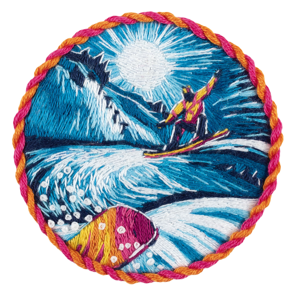 Набор для вышивания нитками Panna Живая картина JK-2337, Брошь. Сноуборд, 5.5х5.5 см