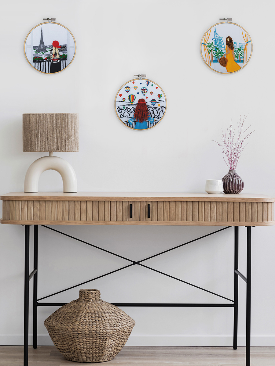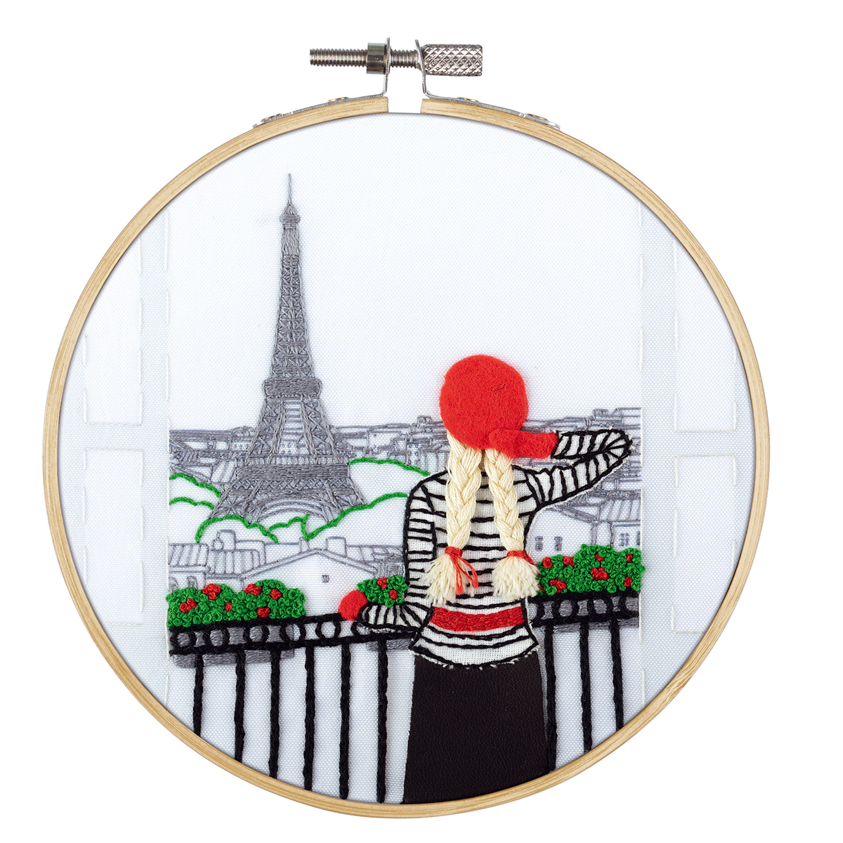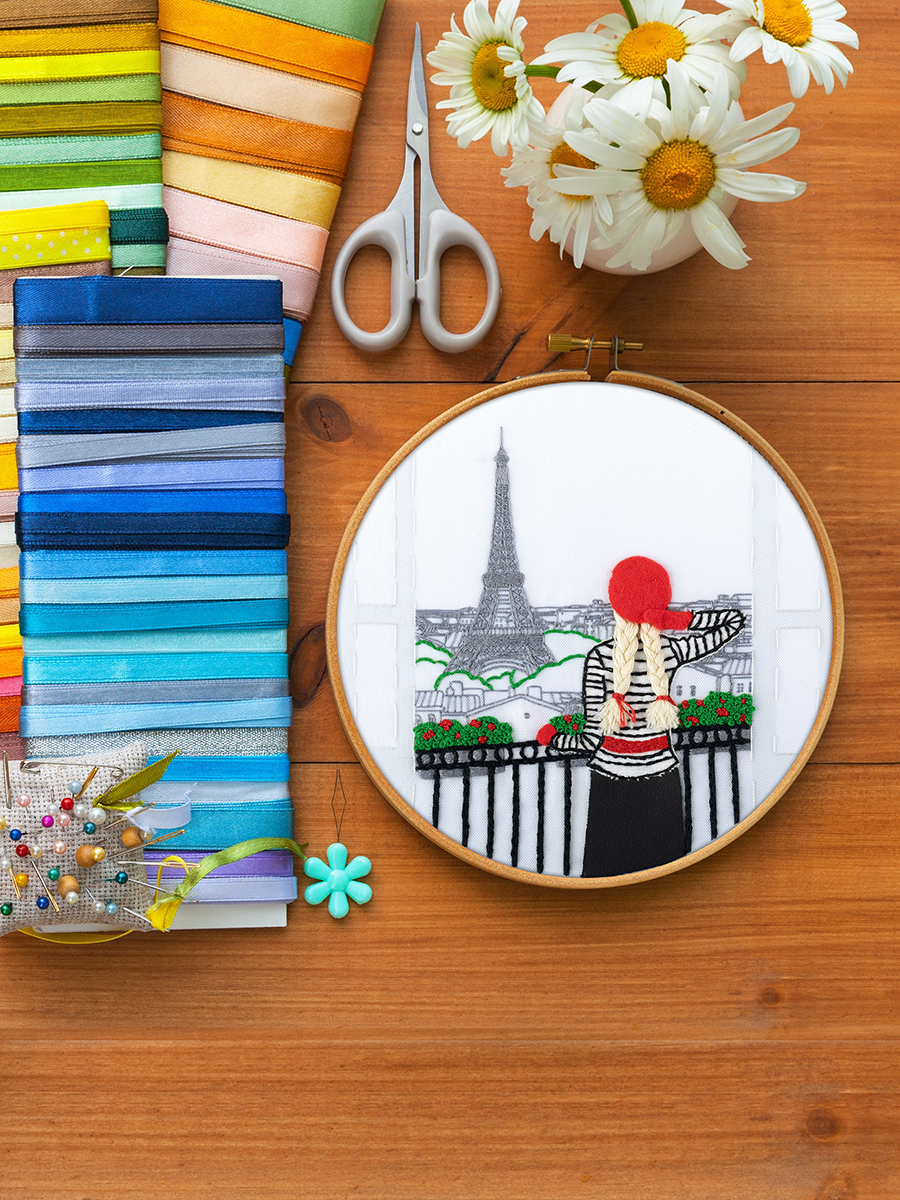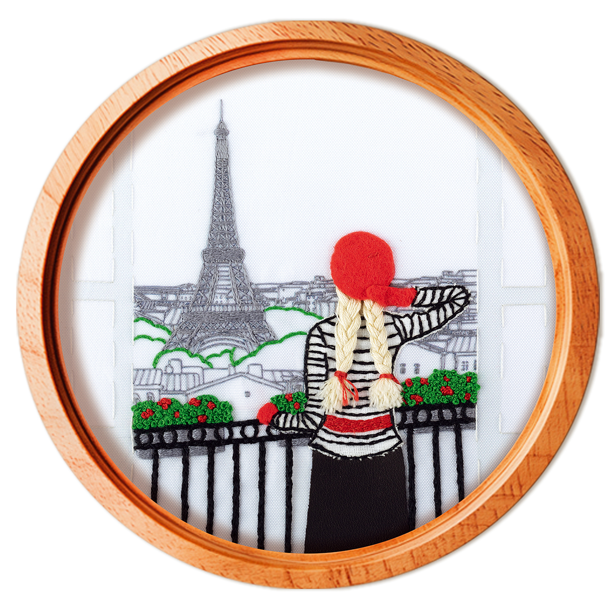 В набор для вышивания в технике гладь PANNA входит: ткань с напечатанным рисунком, хлопчатобумажные нитки мулине Gamma, деревянные пяльцы, фетр, искусственная кожа, хлопковая ткань, игла для вышивания Gamma, подробная инструкция по вышиванию. Вышивка комбинируется с элементами аппликации. Особая деталь - объемные волосы у героини.
