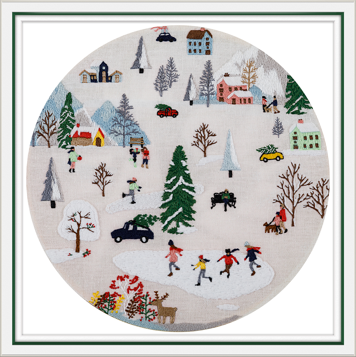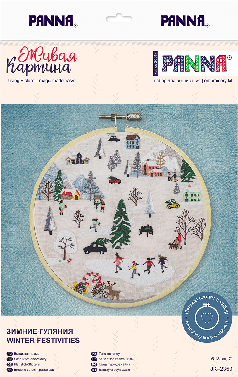 Набор для вышивания нитками Panna Живая картина JK-2359, Зимние гуляния, 18х18 см