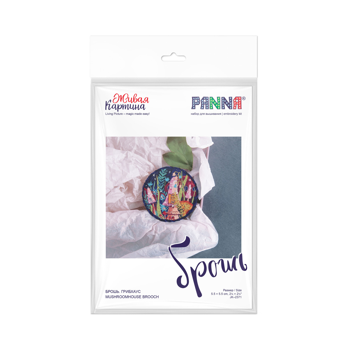 Набор для вышивания нитками Panna Живая картина JK-2371, Брошь. Грибхаус, 5.5х5.5 см