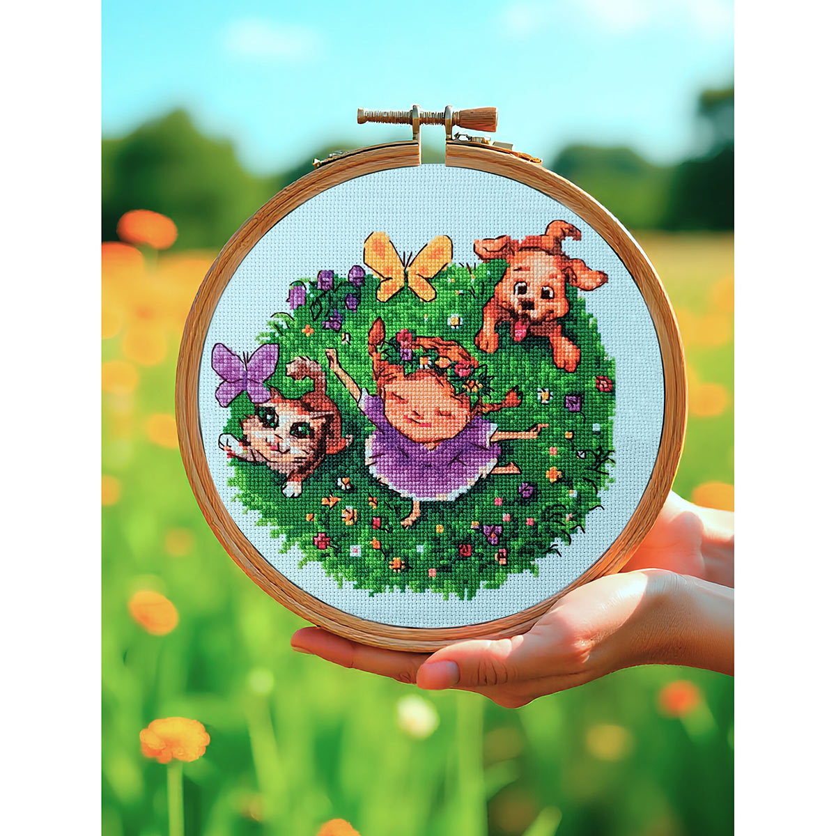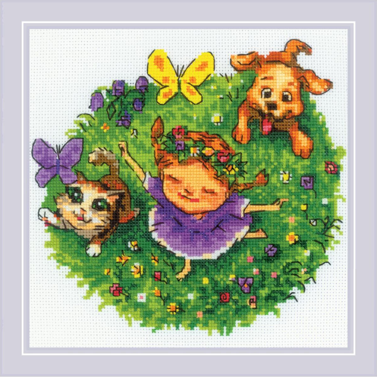 Набор для вышивания нитками Риолис, По траве босиком 20х20см
