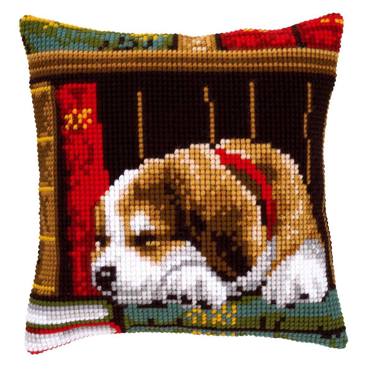 Набор для вышивания подушки Vervaco PN-0148118, Собака, спящая на книжной полке 40x40 см