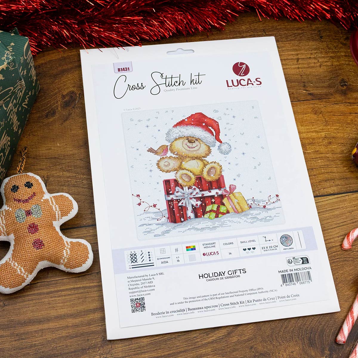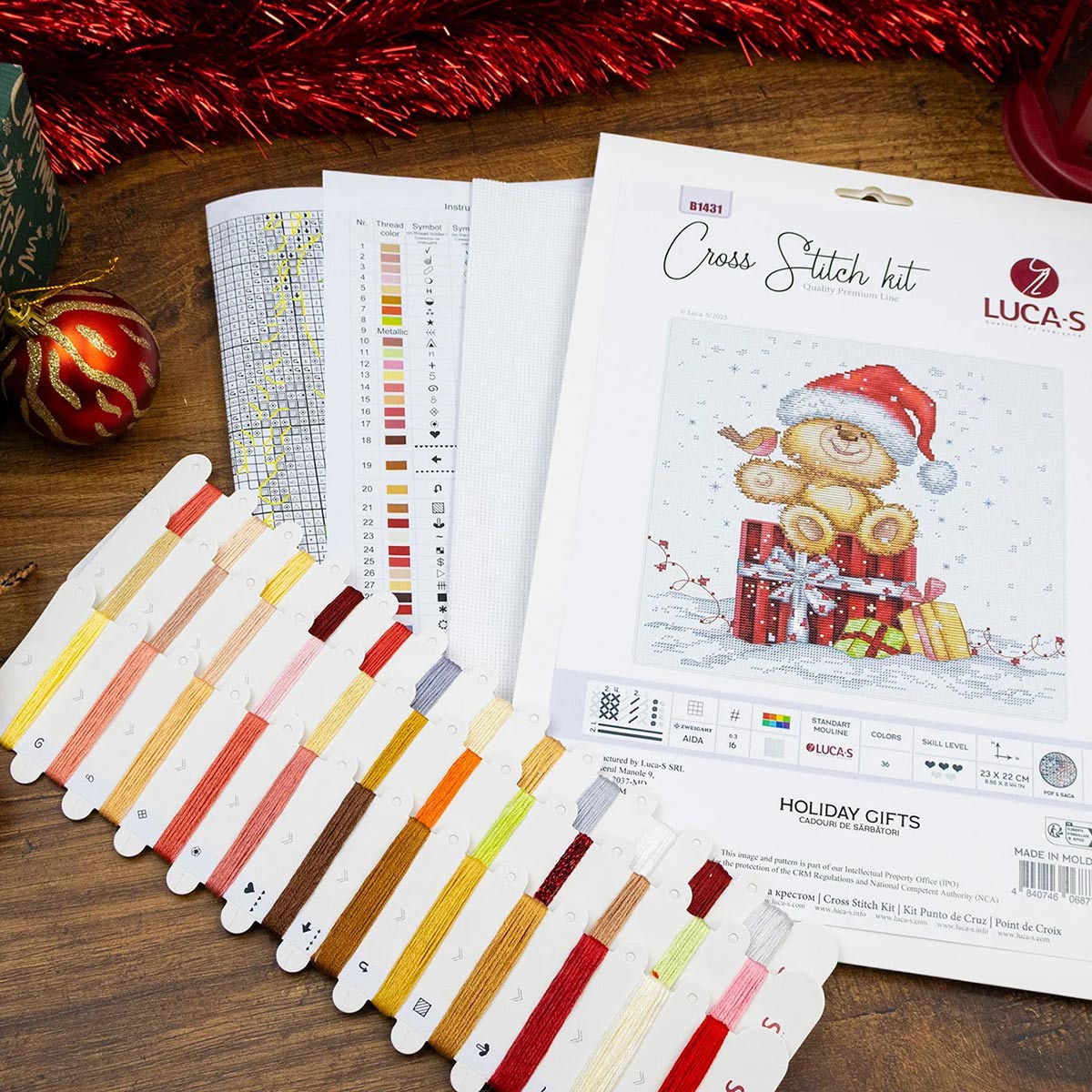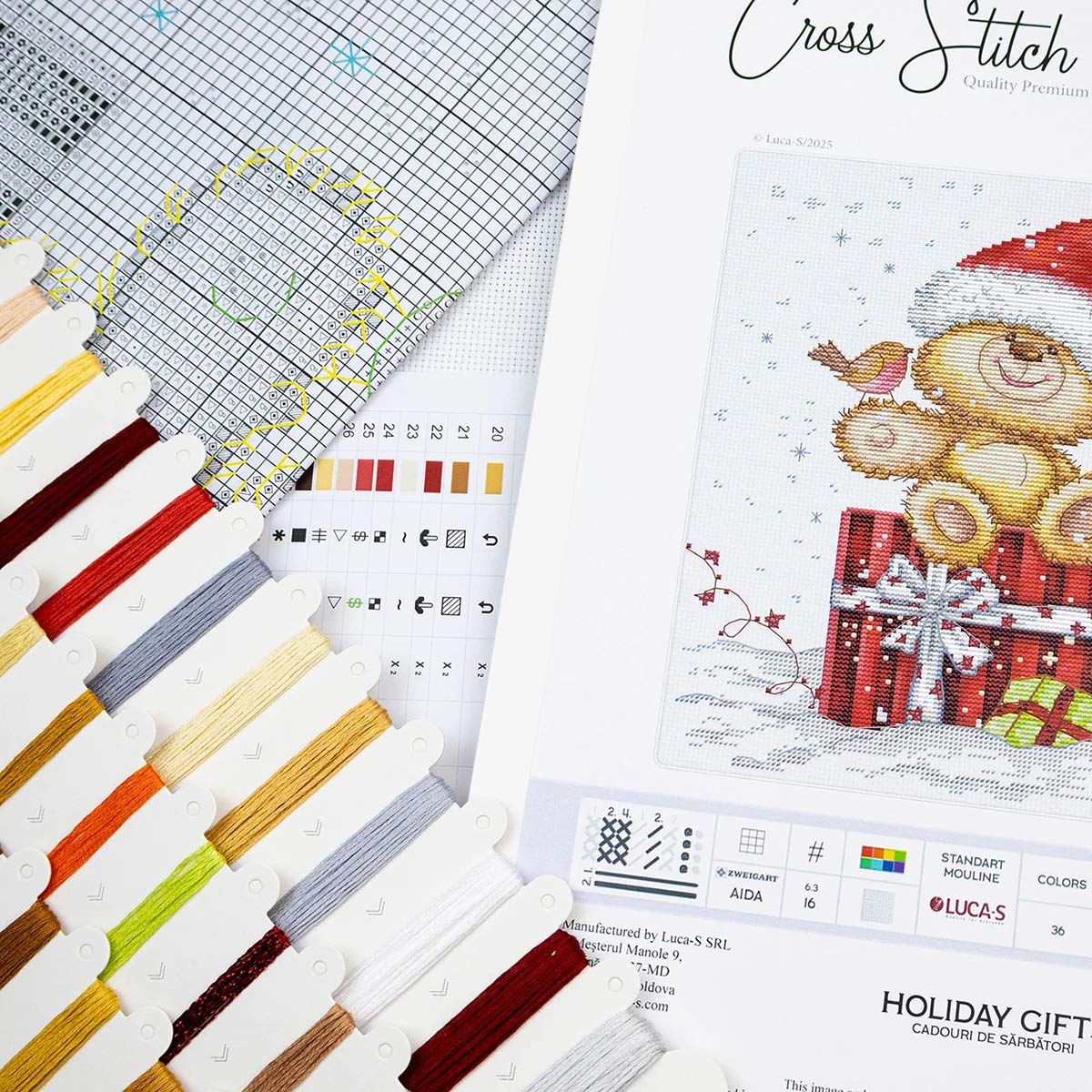 Набор для вышивания нитками Luca-S, Праздничные подарки, 17х20см