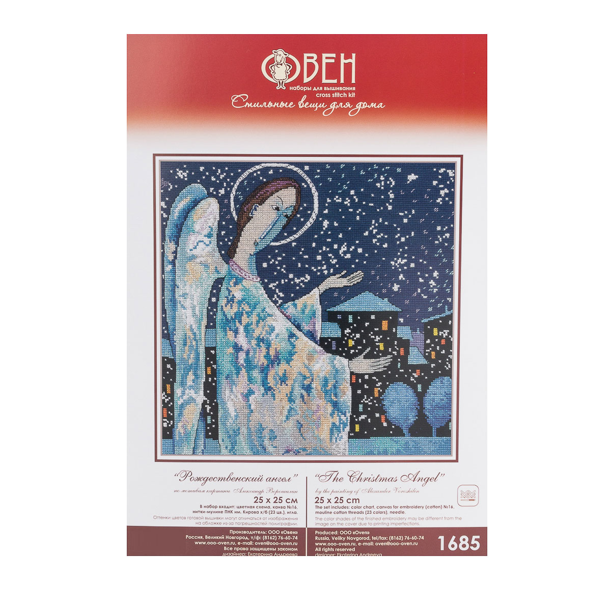Набор для вышивания нитками Овен, Рождественский ангел 25х25см